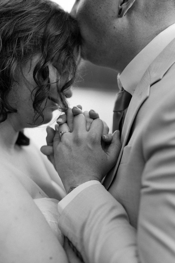 One of my favorite 2024 wedding trends has been watching couples ditch tradition and decide to get ready together. Erin and Olivia helped one another get dressed in the middle of the forest. It was so sweet watching them help one another into their clothes. Olivia helped Erin tie their tie while Erin helped Olivia zip up her dress. They giggled the entire time and soaked in the moment as the sunlight filtered between the trees down on them.