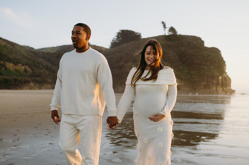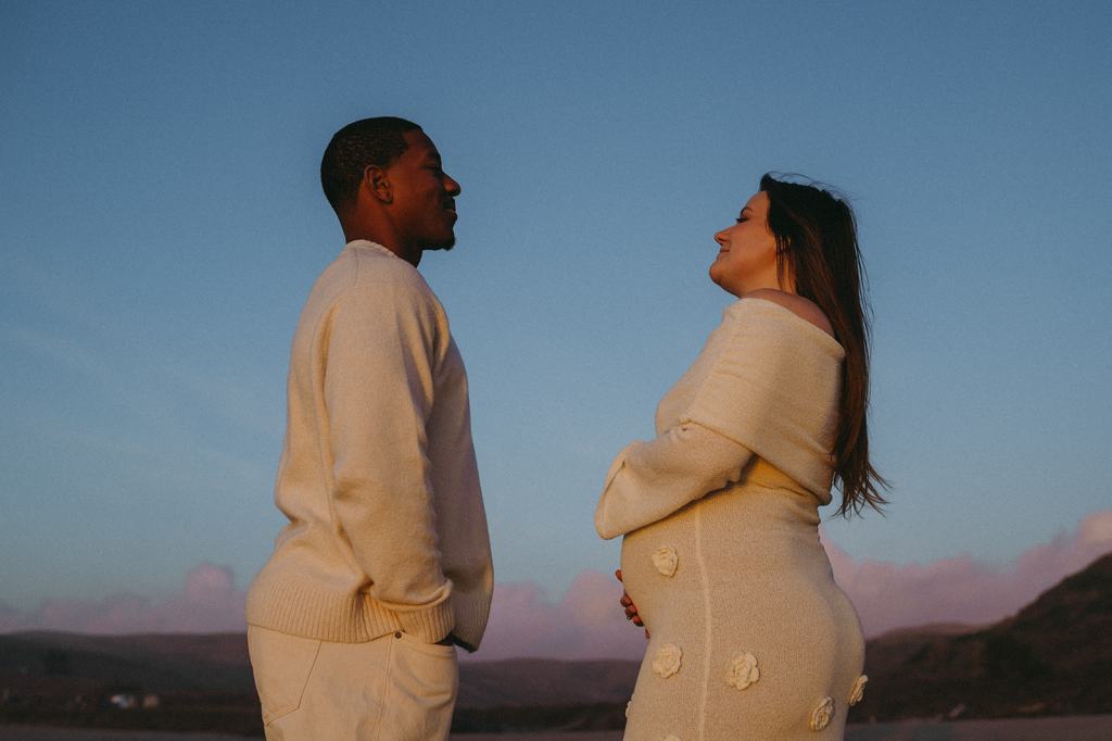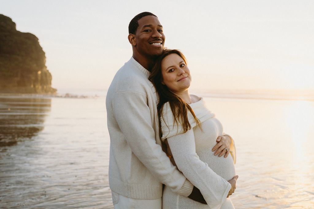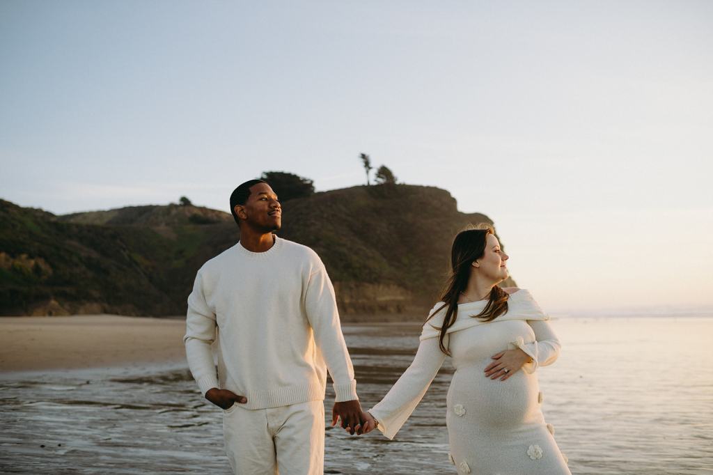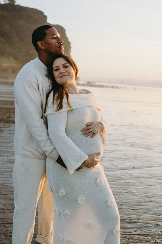 If you’ve been around long enough, you might remember I moved to Big Sur in 2021. I lived in the heart of Big Sur for 8 months. And it was truly some of the best months of my life. Living at the beach, driving the Pacific Coast Highway daily, and exploring new beach hikes was a dream. I created some magical memories here. When Malcom and Amanda asked if I had any ideas for their Big Sur Maternity Photoshoot, I told them I had hundreds of ideas. Finding secret beaches was my life’s mission during my time in California, so I knew I wanted to give them a magical experience at a quiet beach. Sure enough, we planned their shoot on a day it was supposed to be rainy. However, as we drove through the Redwoods and emerged at Garrapata State Park, the rain and fog lifted. Instead, we were treated to full sun. It felt like a gift for these two to get a truly magical January sunset at the beach!
