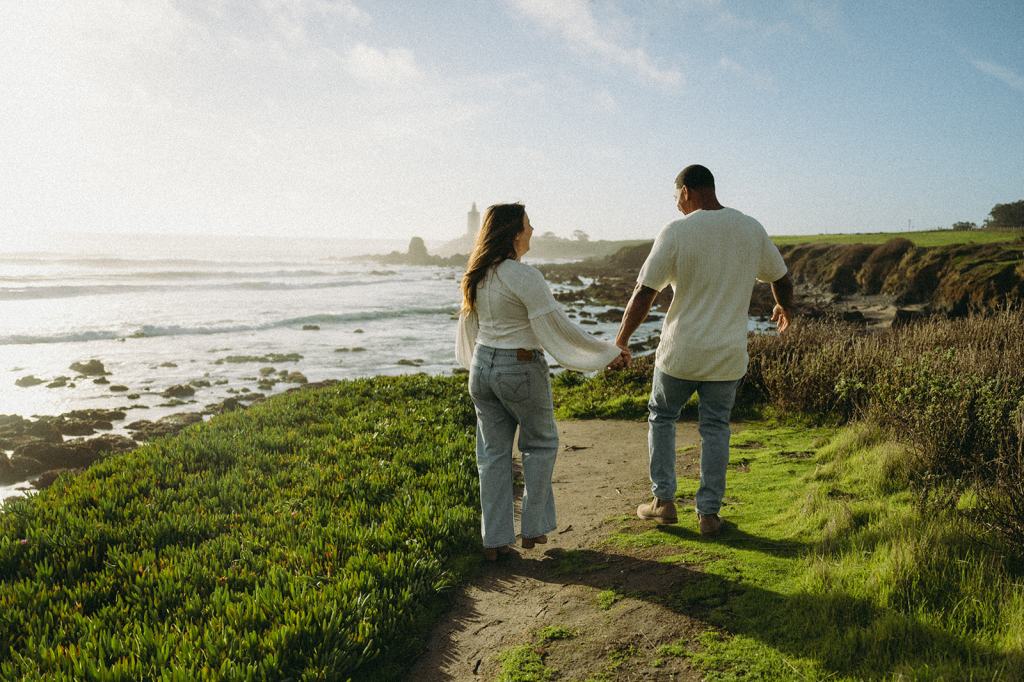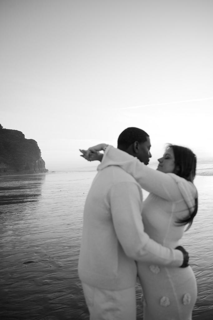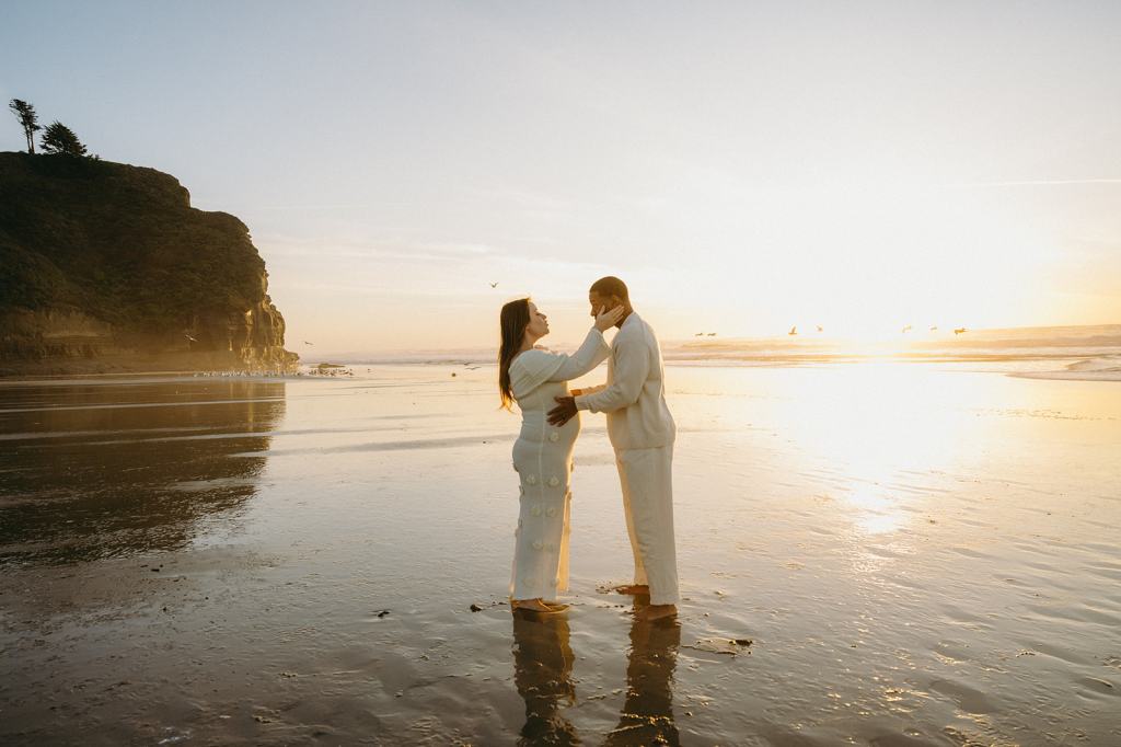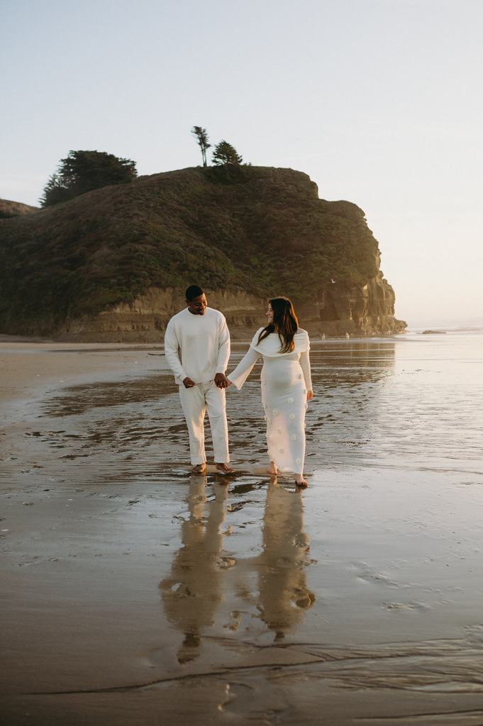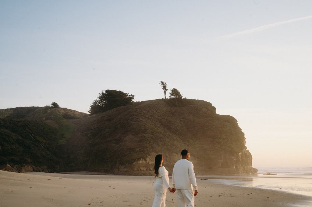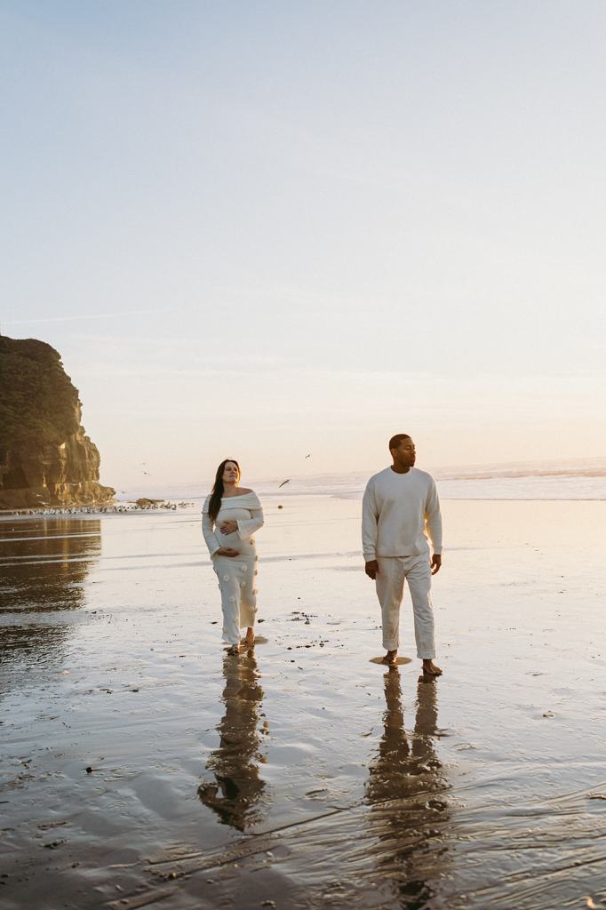 If you’ve been around long enough, you might remember I moved to Big Sur in 2021. I lived in the heart of Big Sur for 8 months. And it was truly some of the best months of my life. Living at the beach, driving the Pacific Coast Highway daily, and exploring new beach hikes was a dream. I created some magical memories here. When Malcom and Amanda asked if I had any ideas for their Big Sur Maternity Photoshoot, I told them I had hundreds of ideas. Finding secret beaches was my life’s mission during my time in California, so I knew I wanted to give them a magical experience at a quiet beach. Sure enough, we planned their shoot on a day it was supposed to be rainy. However, as we drove through the Redwoods and emerged at Garrapata State Park, the rain and fog lifted. Instead, we were treated to full sun. It felt like a gift for these two to get a truly magical January sunset at the beach!