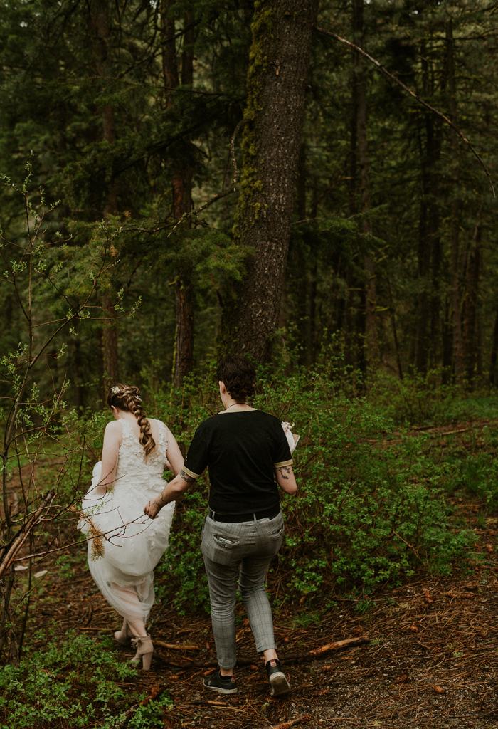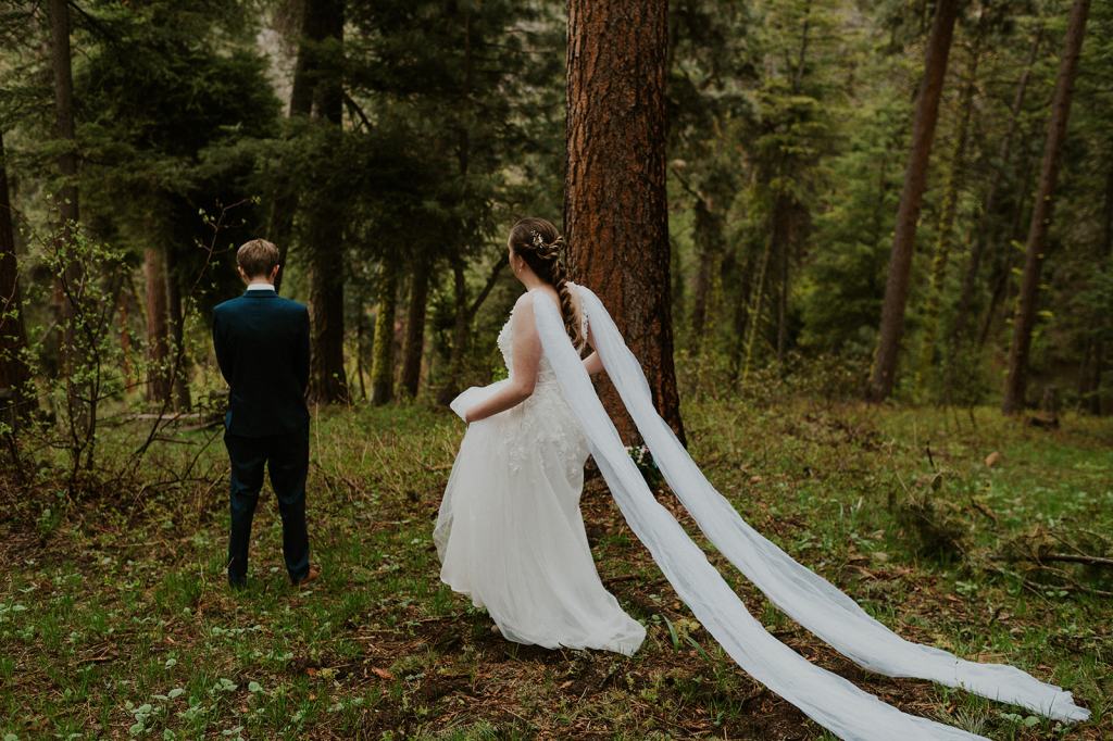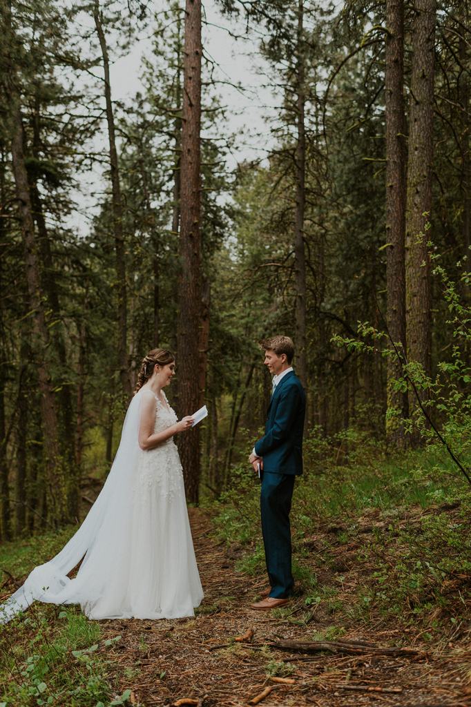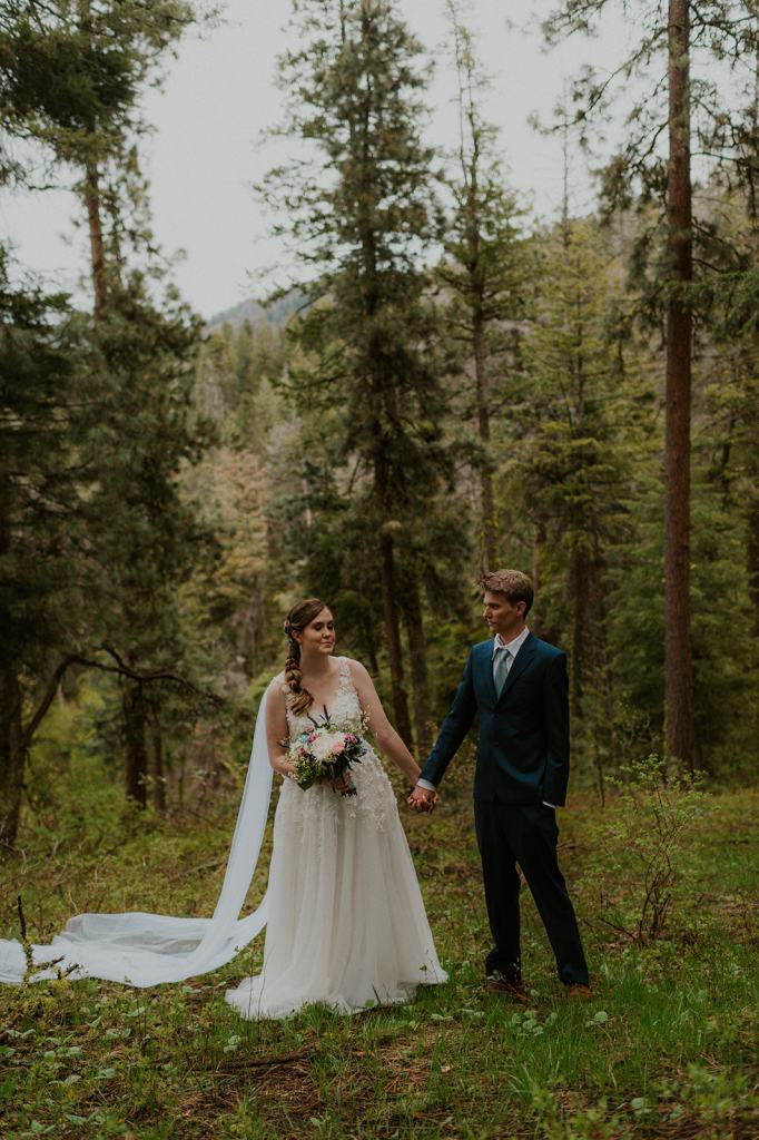 KaLynda and Kyle’s fairytale Boise Idaho Elopement in the Woods was unforgettable. Days before their wedding, K & K asked me if I might be available to photograph a private secret elopement before they celebrated with friends and family at Still Water Hollow. An adventure elopement felt more true to their love and personality as a couple, but they still wished to celebrate with a huge party. They are each a school teacher and filmmaker, so they definitely have romantic, huge hearts. Truly, I felt honored they wanted to include me in a special intimate moment before their wedding!