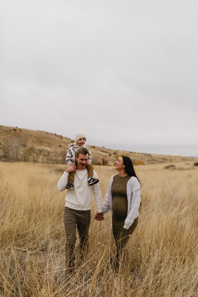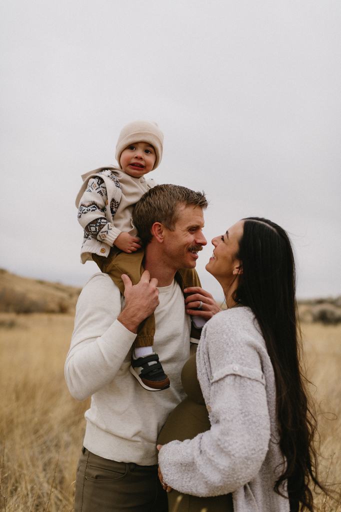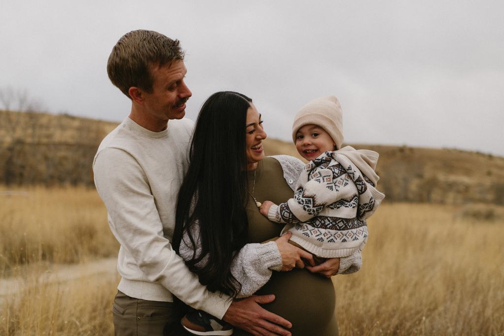Capturing this amazing family’s Boise Foothills Maternity Photoshoot filled my cup. This outdoorsy family loves spending their time on nature walks and hikes in the Boise Foothills, so it only felt natural to plan their family maternity photos in their favorite place. Spending their last fall days as a family of three together felt special to photograph. Every time I asked their toddler where baby sister was, his face erupted in big smiles. I could feel the contagious excitement from all of them as they prepare for the next big milestone in their life!