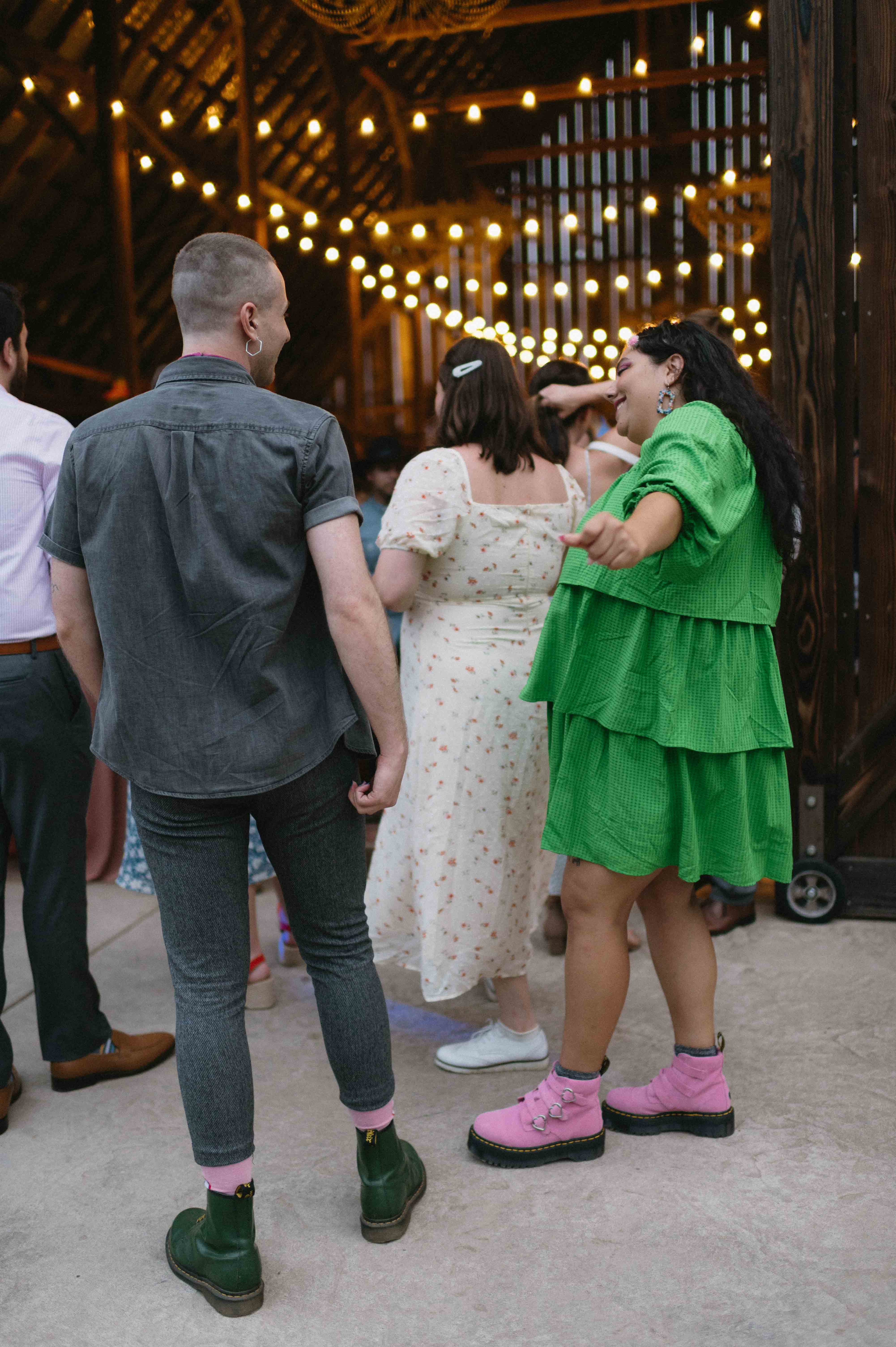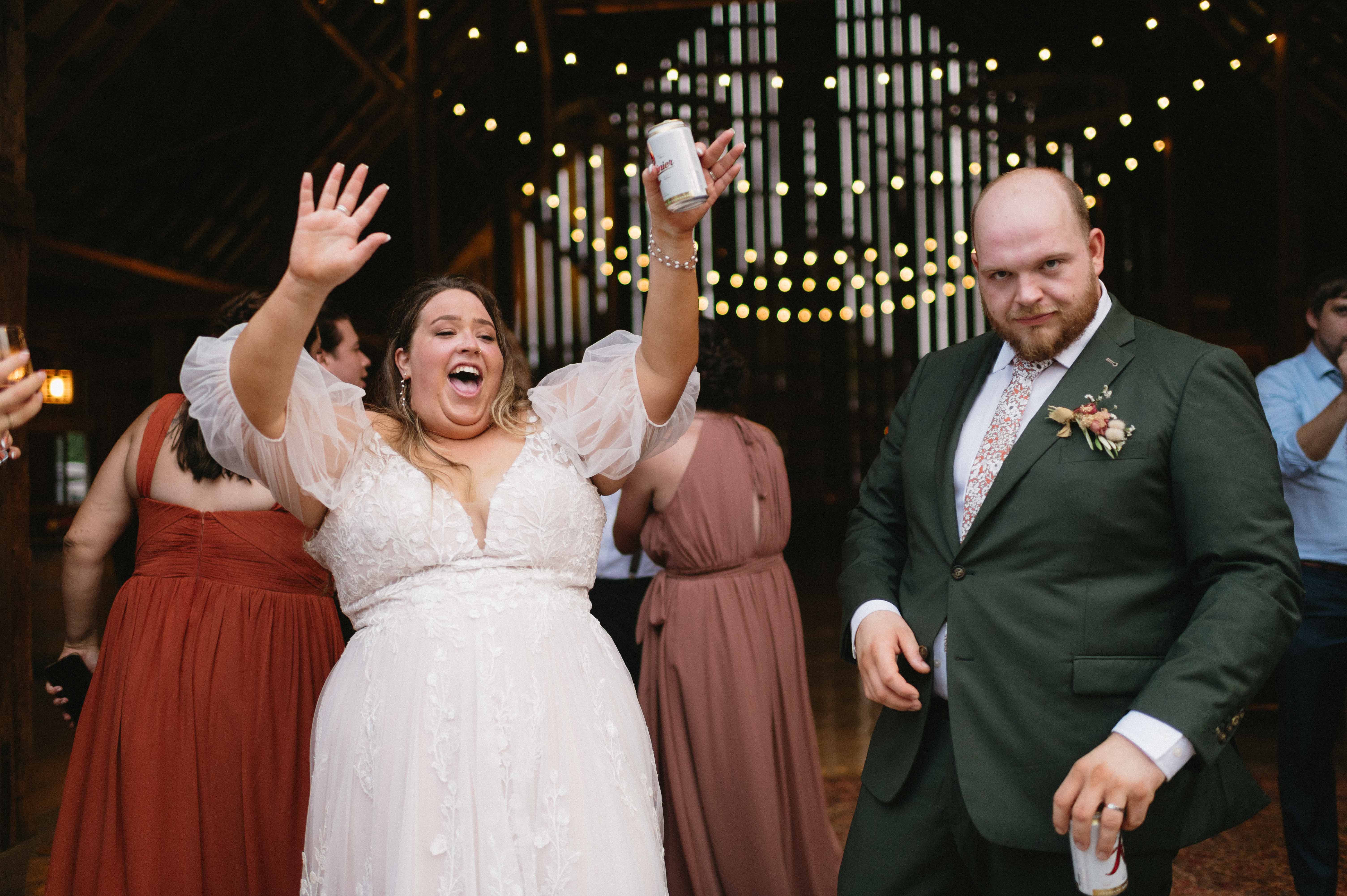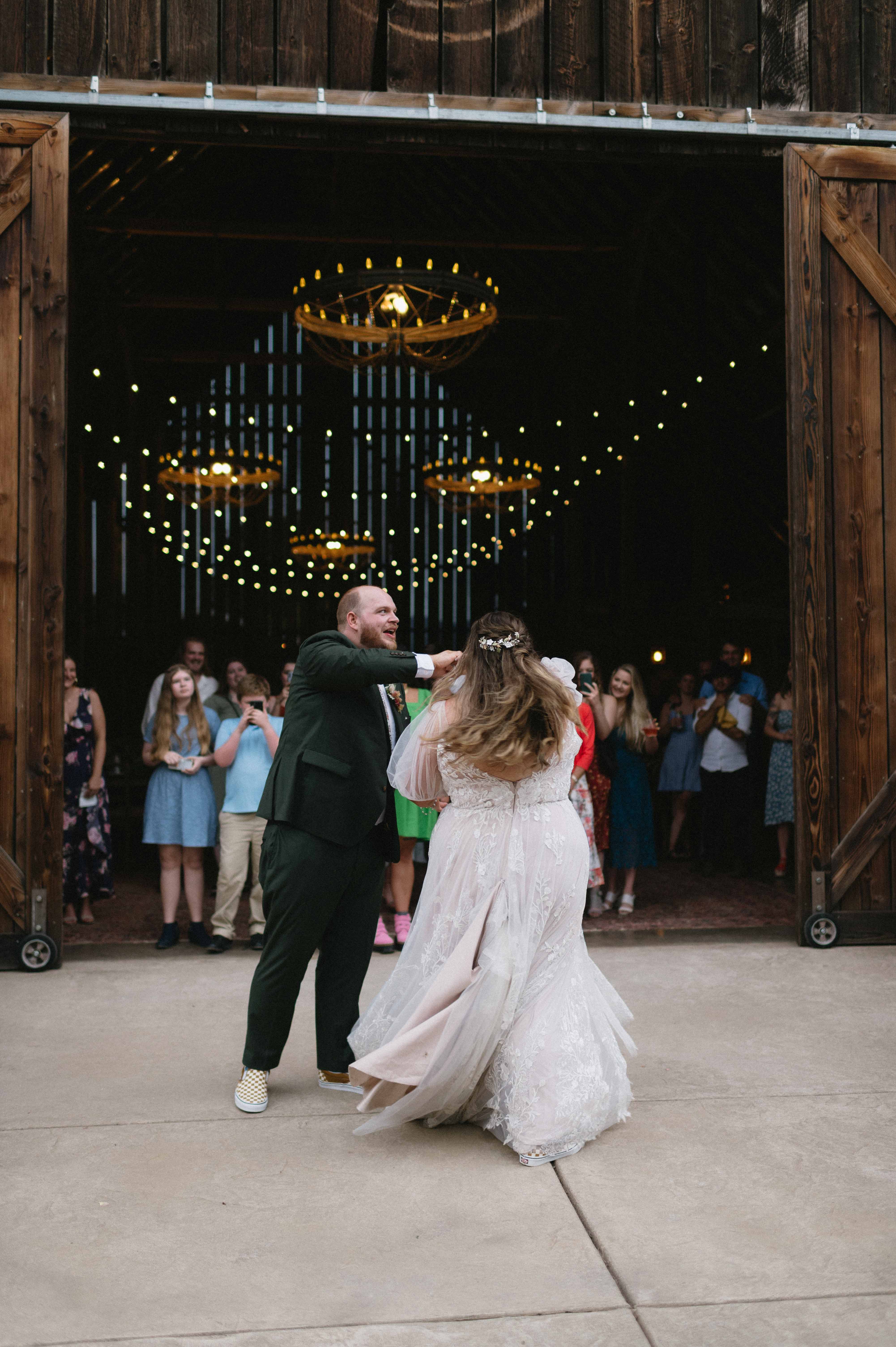 Their ceremony was gentle and a little goofy in the best ways. Vows were personal and peppered with inside jokes that had the crowd alternating between wiping away tears and exploding into laughter. The tin roof barn made every clap and cheer resonate, turning each spontaneous cheer into a small, echoing celebration.