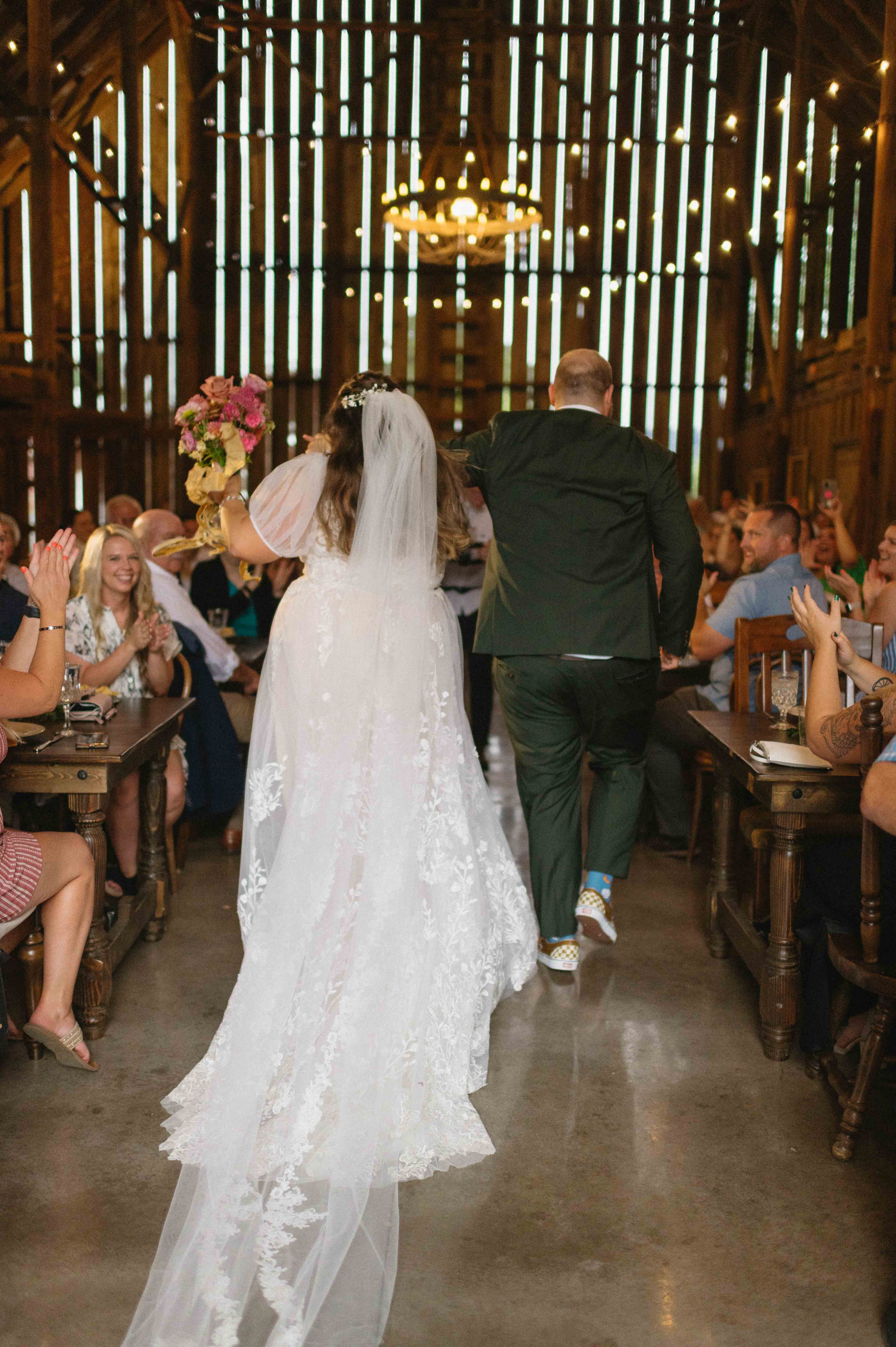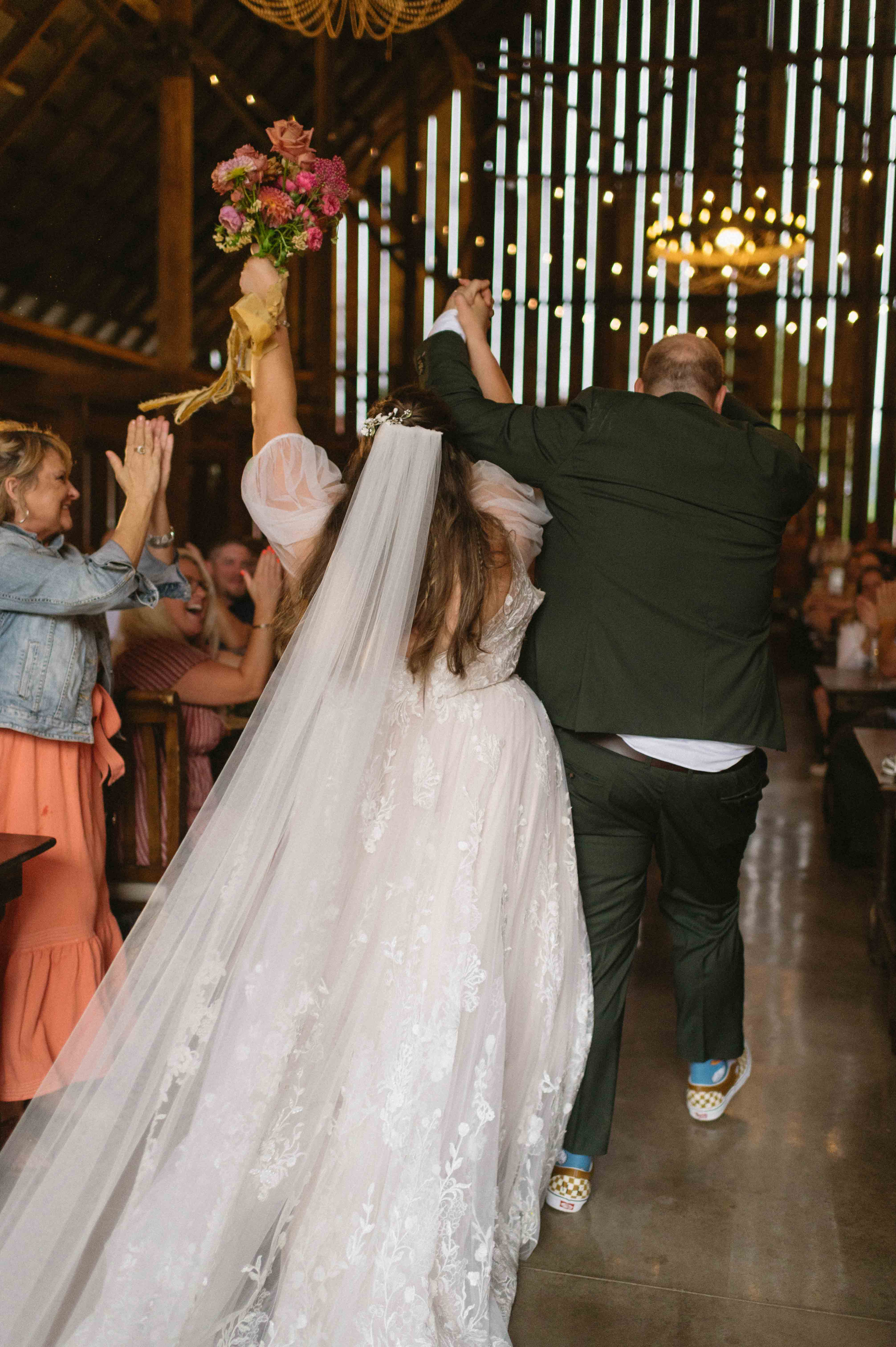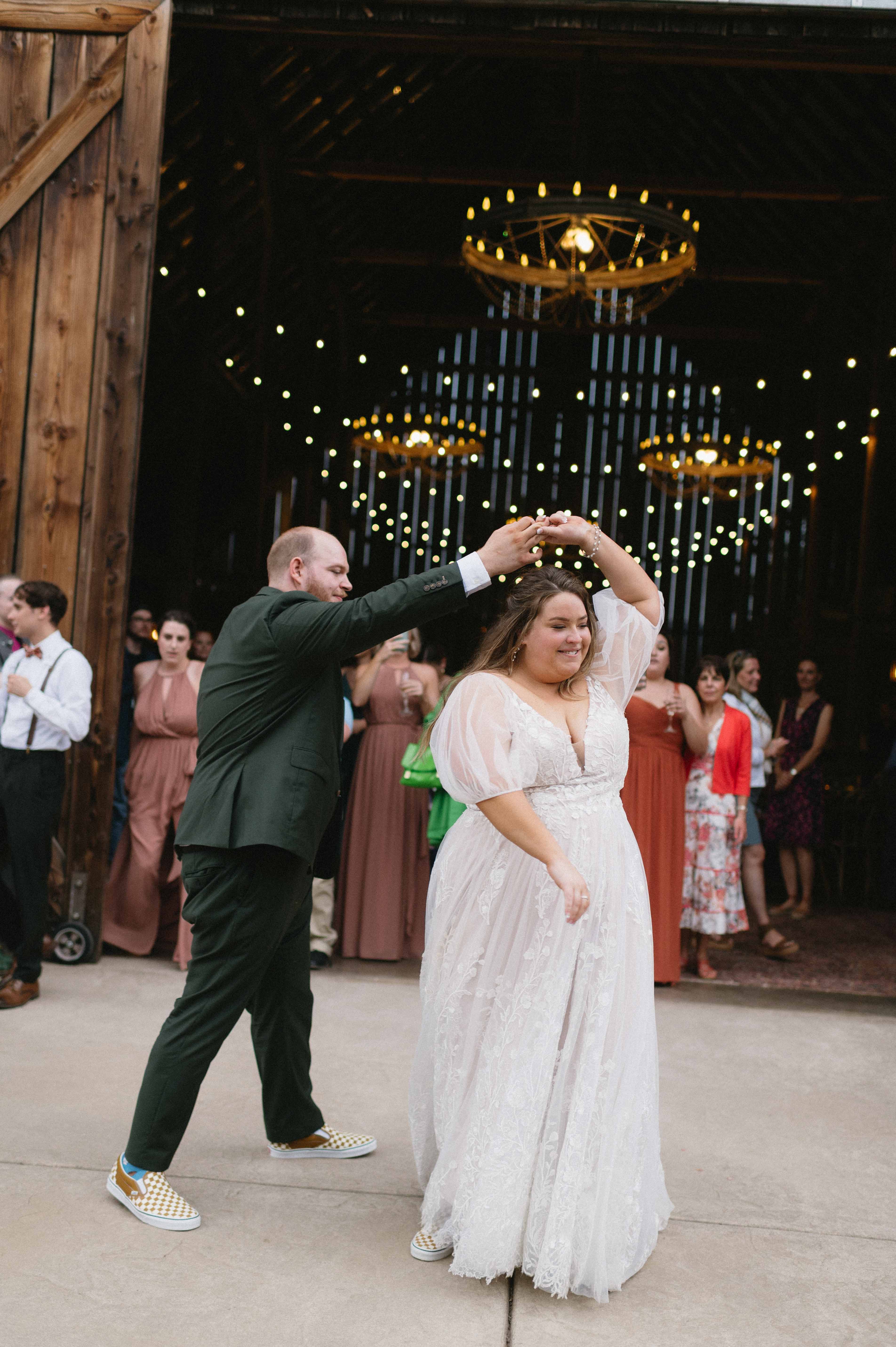 Their ceremony was gentle and a little goofy in the best ways. Vows were personal and peppered with inside jokes that had the crowd alternating between wiping away tears and exploding into laughter. The tin roof barn made every clap and cheer resonate, turning each spontaneous cheer into a small, echoing celebration.