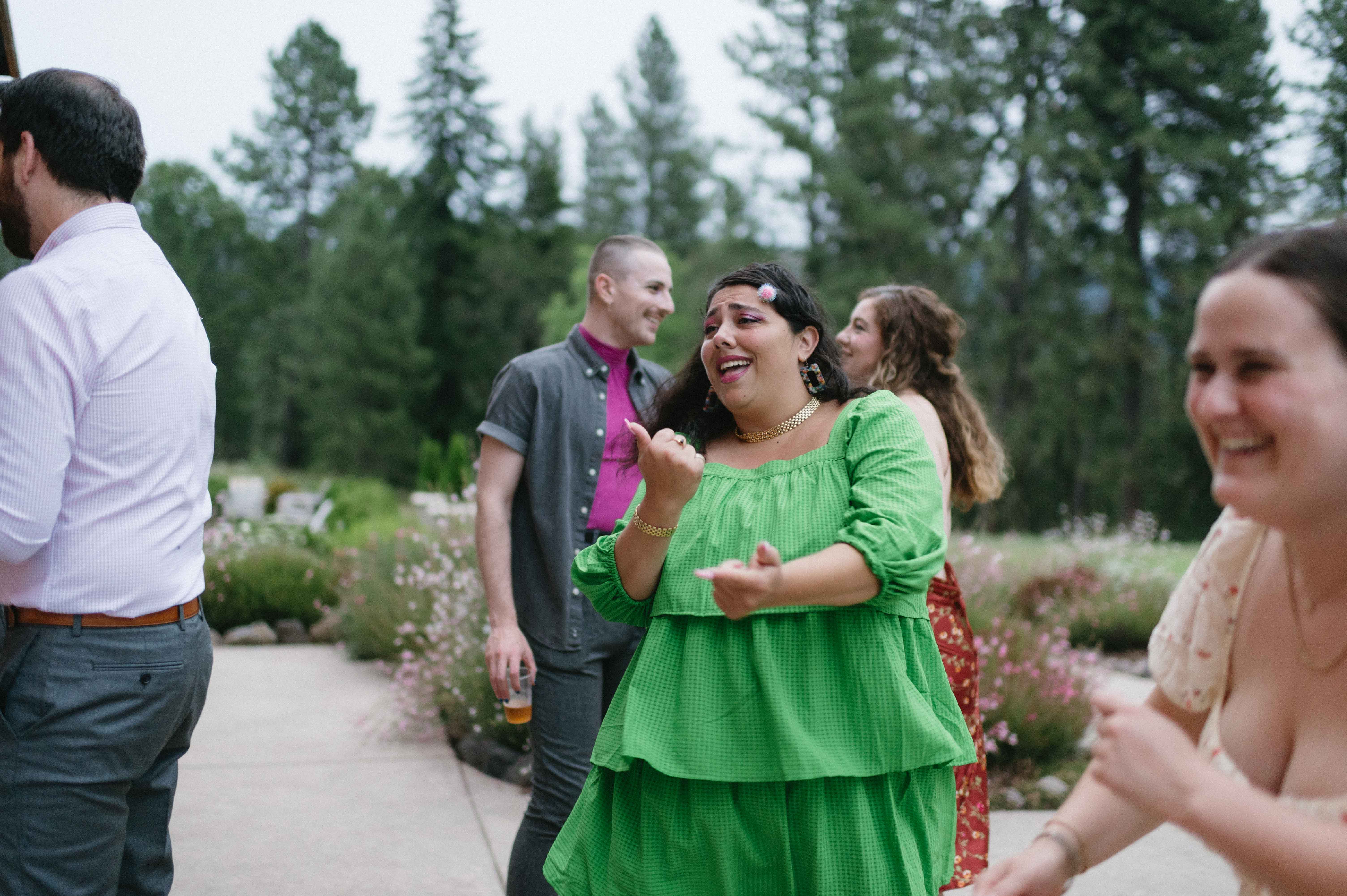 As dusk fell, string lights came alive and the barn became a warm, glittering nest. The dancing intensified, feet kicked up dust, and big laughs echoed late into the night. It wasn’t about perfection. Nope! Their Hood River Oregon was about color, music, movement, and memory-making. In the end, their Hood River wedding was a bright, quirky, and utterly heartfelt celebration. It felt like a joyful promise renewed in the place where their story first turned toward forever.