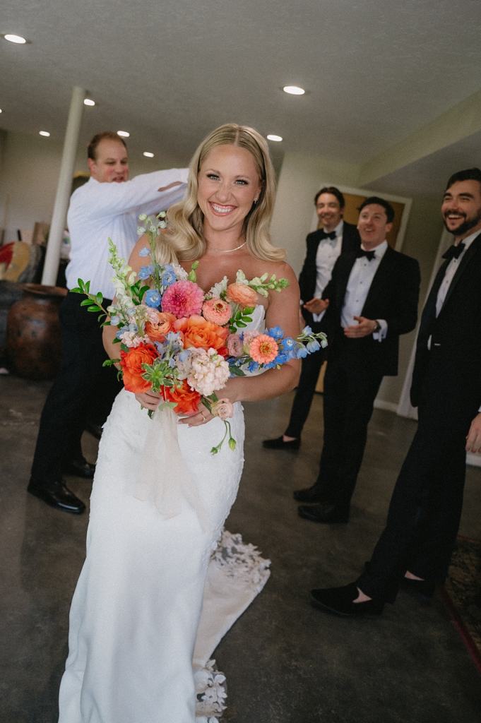 Jen told me her vision for their wedding was to infuse as much joy, color, and happiness into their Deer Flat Ranch wedding. After explaining that they hoped their wedding would feel welcoming and approachable, I understood their vision right away. None of the formal or stuffy vibes. Nope! They wanted to mirror the joyful energy of summer and being in love. As lovers of fashion and modern design, they knew wanted a modern wedding venue near Boise to host. Finding a wedding venue without a “rustic” or country vibe can be challenging in Idaho. However, Deer Flat Ranch was the perfect venue for their personalities.