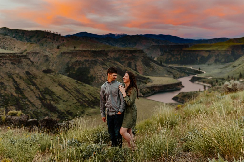 Around the time they emailed me, the pandemic was in full swing and I let them know I was waiting until restrictions were lifted before shooting again. During this time, I was scouting and taking long drives to find new locations around Boise for shoots. If you’re from Boise, you know there is an allusive “secret spot” everyone in Boise knows about. And if you don’t know where it is, you have definitely seen viral photos of this spot because of the epic snow-capped mountains in the background and curving river that is framed by the canyon. It’s an epic location and one I’ve been reluctant to share because I don’t want it to become oversaturated with too many people. Sometimes with secret spots, I wait for the right couple and email to come along before I’ll share it. Garrett works for the state of Idaho in legislation to protect the fish & wildlife and protected lands in our state so I had a feeling they would respect the area as well and be equally excited to see this magical location.