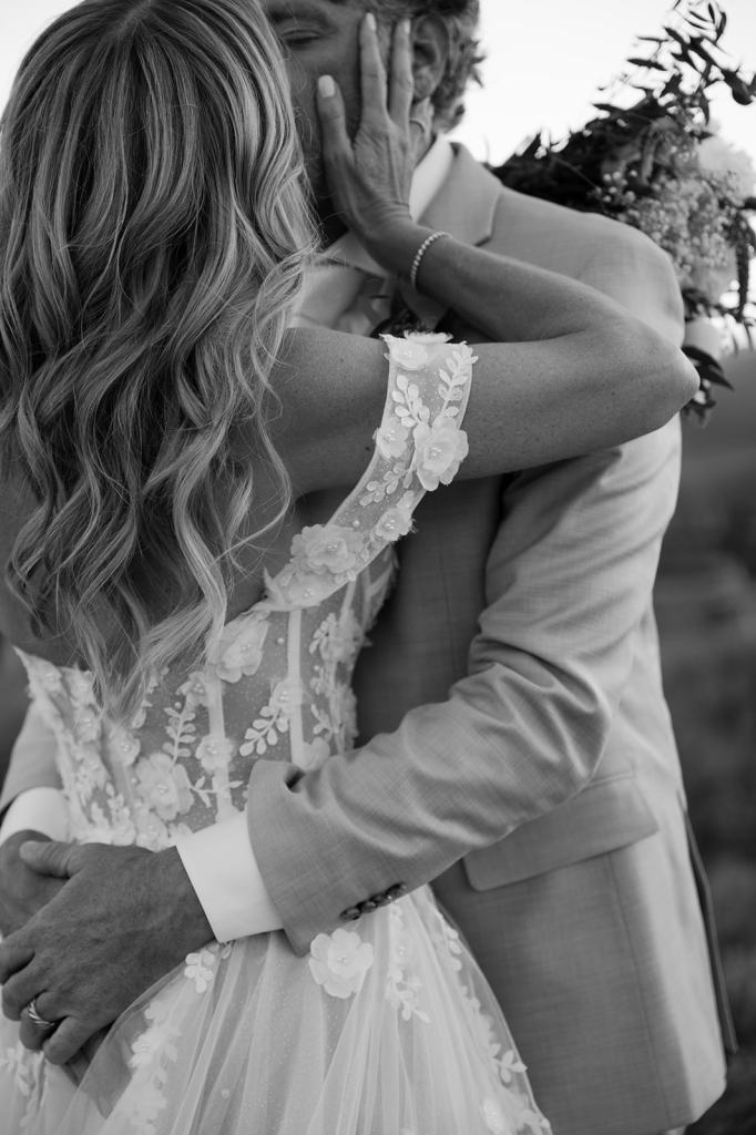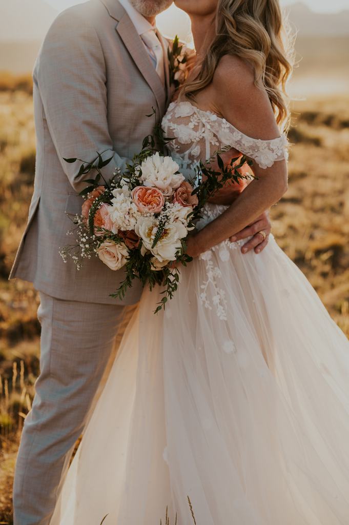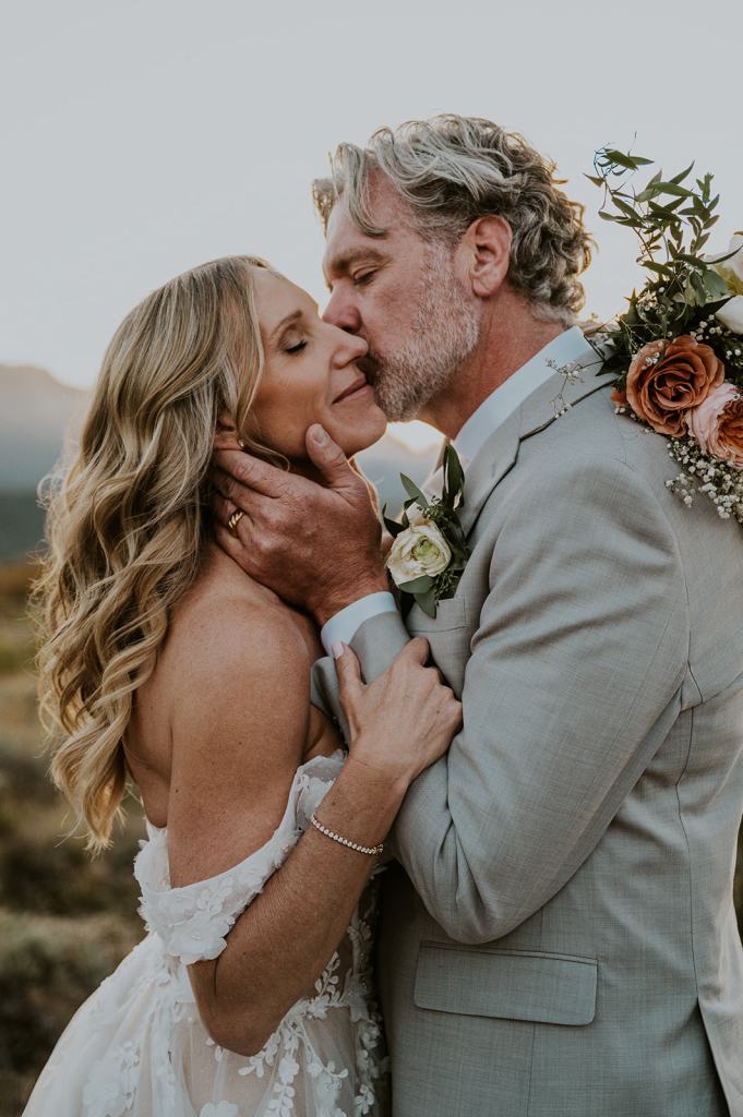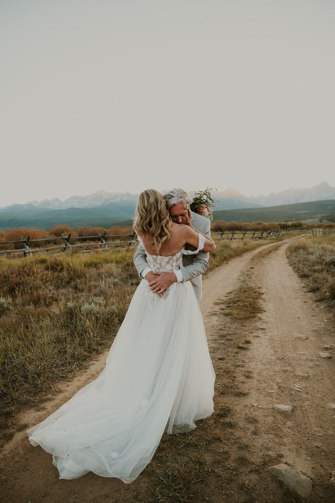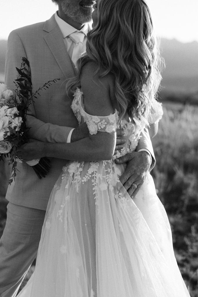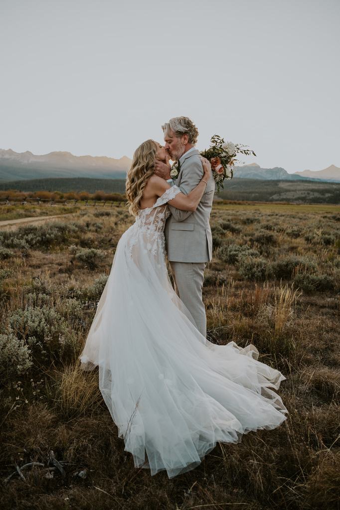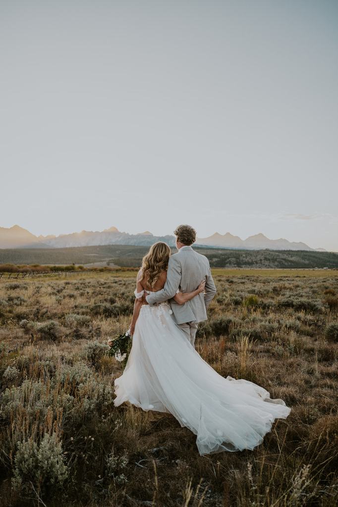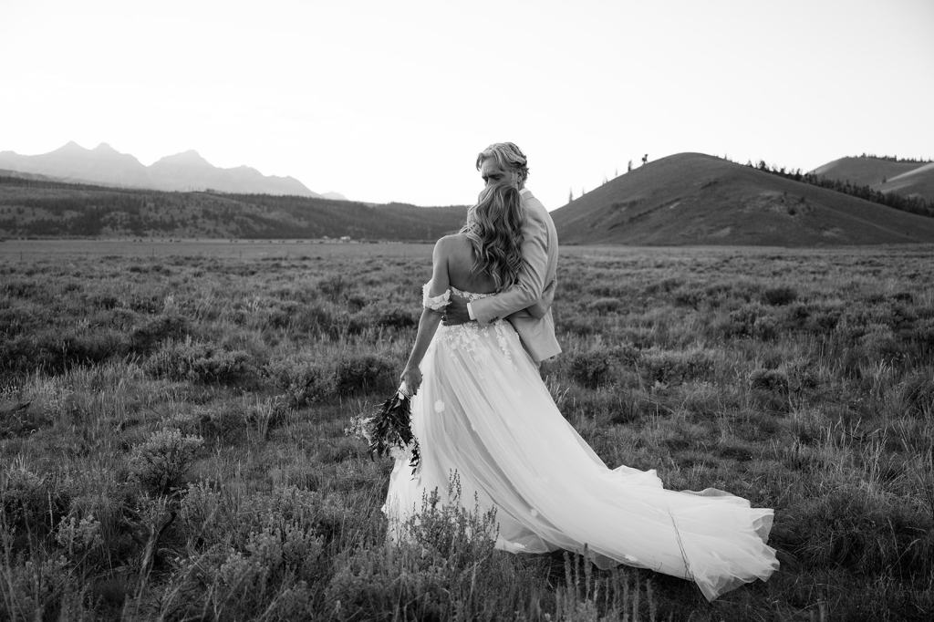 You can’t skip golden hour portraits during an Idaho Rocky Mountain Ranch Wedding. Once all the guests left for cocktail hour, we stole Pilgrim and Traci for a few sunset portraits. We asked them to just take in the moment, cuddle close, kiss one another, and take in the landscape. My favorite thing about being an Idaho Wedding Photographer is letting couples take a moment without the cameras “on” and have them face the mountains. Allowing them a moment to absorb the scenery is so important for their experience. Time felt like it stood still.