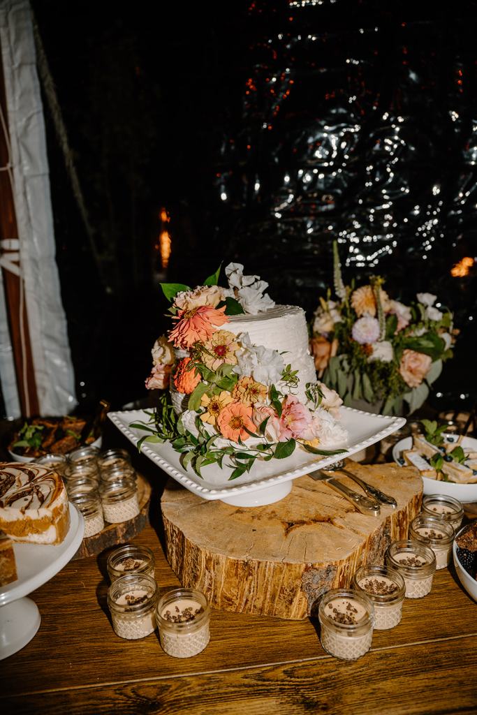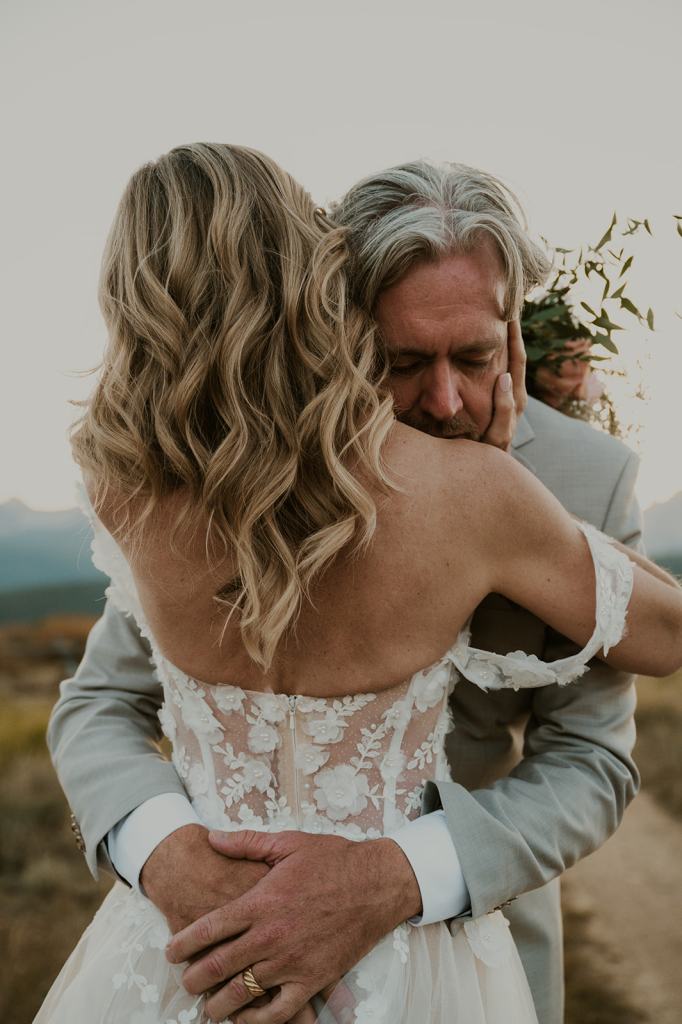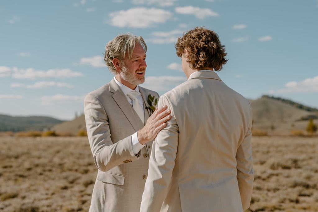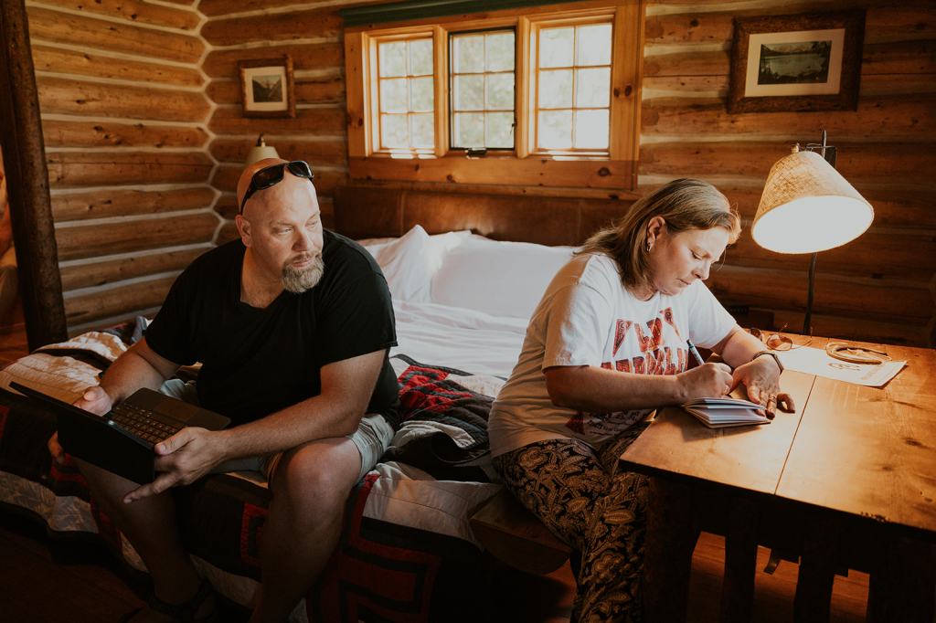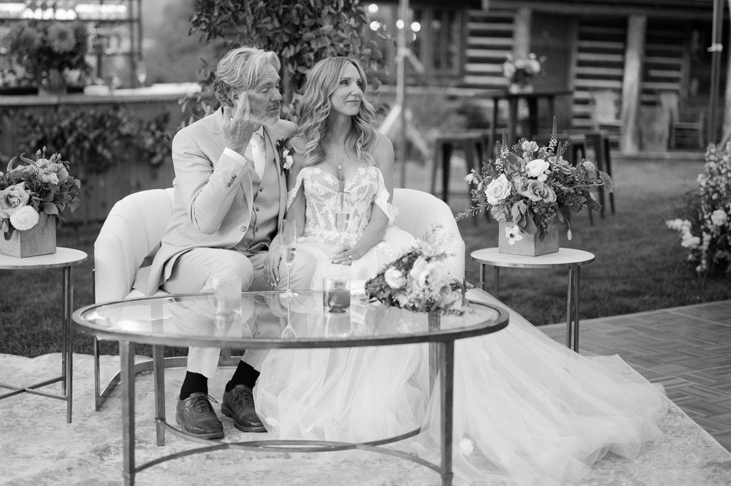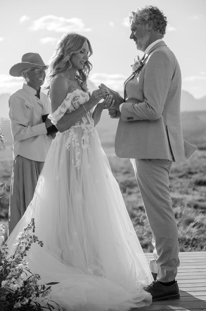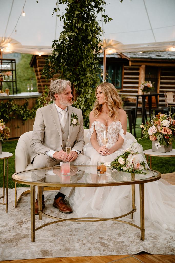 Traci and Pilgrim’s September wedding day started slowly on a perfect morning. Imagine this: your father in law is eating breakfast on the front porch with his dog sitting next to him. You are finishing your vows under the awning of your private cozy honeymoon cabin overlooking the Sawtooths. The air is crisp and feels like the start of fall. The aspen trees are starting to change colors. It’s your wedding day and everything is still except for the mountain breeze. Sounds perfect right?