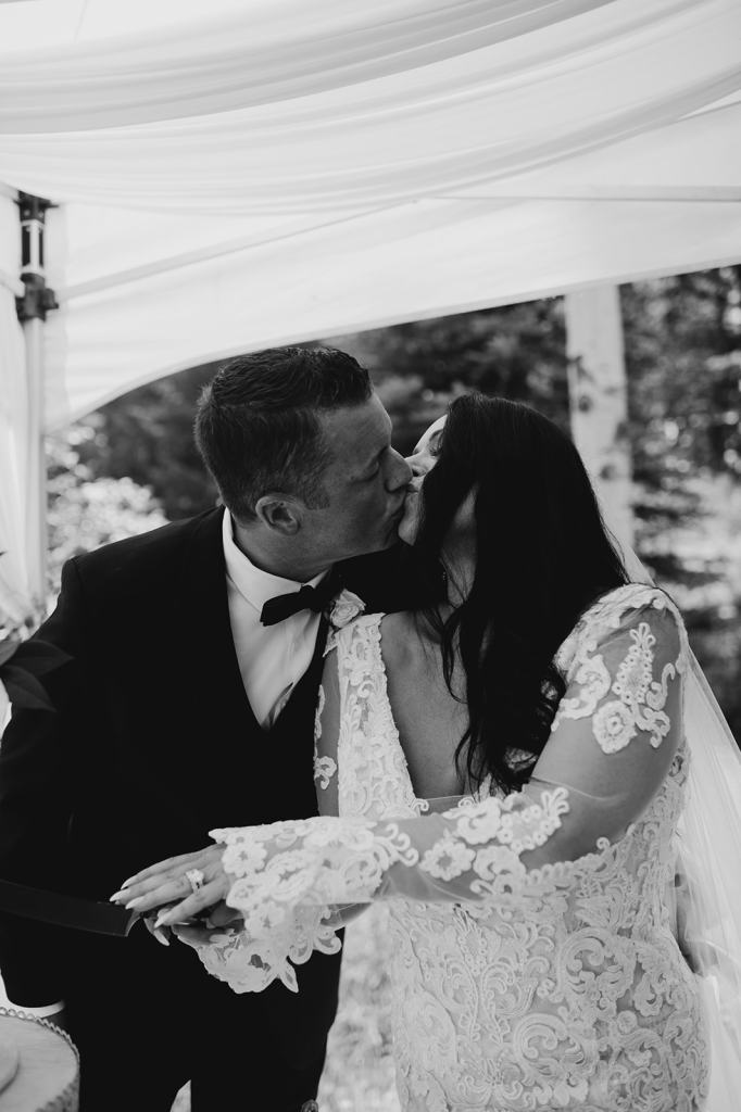 Lyndsey dreamed of walking barefoot through the grass garden down the asile. And they wanted flowers everywhere. Their amazing wedding florist in McCall covered every inch of their wedding in florals. She created an amazing floral installation on a pine tree! And an amazing flower install inside the cabin on the fireplace! Even the canoe on the river was covered in flowers. She had orchids in every bouquet (her favorite flower) and the abundance of flowers created the most magical lavish garden wedding McCall Idaho has ever seen. I loved it.