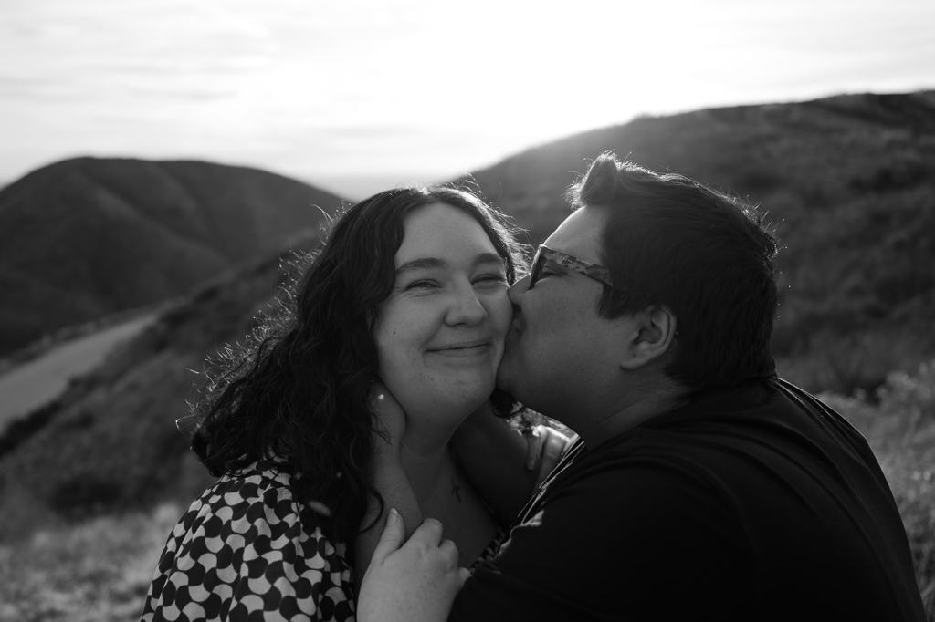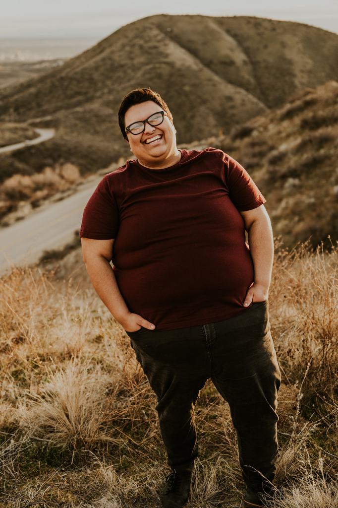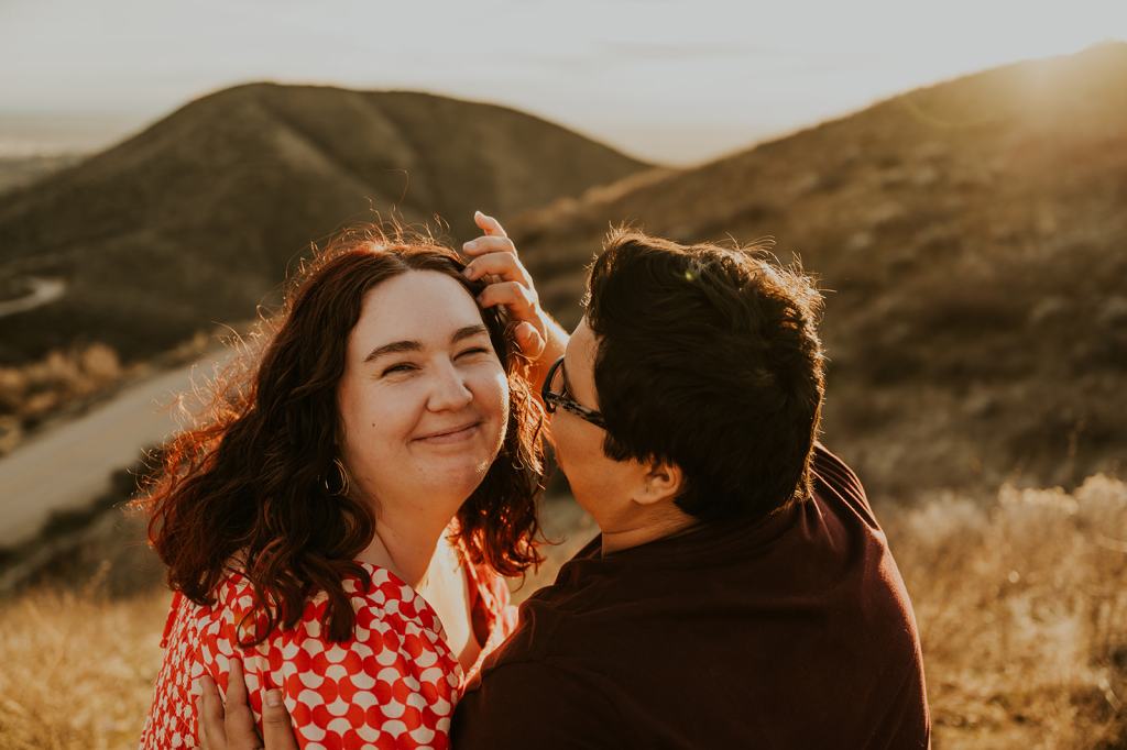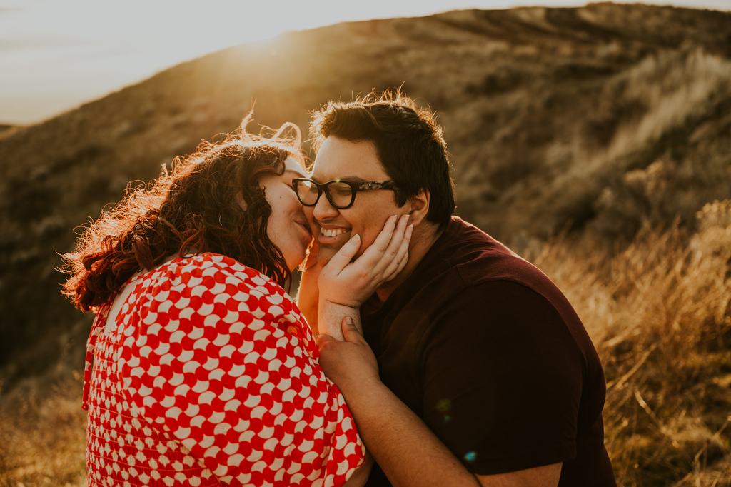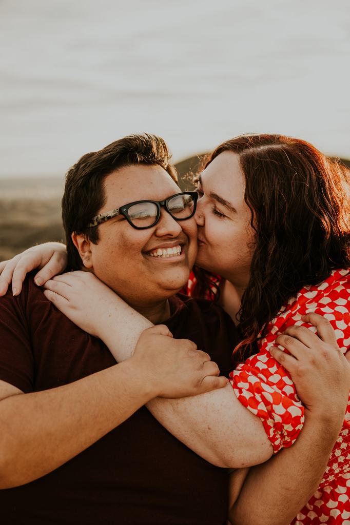 Hannah and Audree’s stunning LGBTQ Idaho Engagement Photos took place in the Boise Foothills on a beautiful spring day. You never know what you are going to get when you take photos outdoors in the springtime in Idaho, but luckily for us, we were treated with a beautiful golden hour. It almost felt like summer! Hannah and Audree are getting married in the spring of 2024. We planned their engagement photos in their hometown of Boise. I loved these two the moment we met. They carry such an infectious energy about them! These two are always smiling and have such a sweet, fun demeanor.