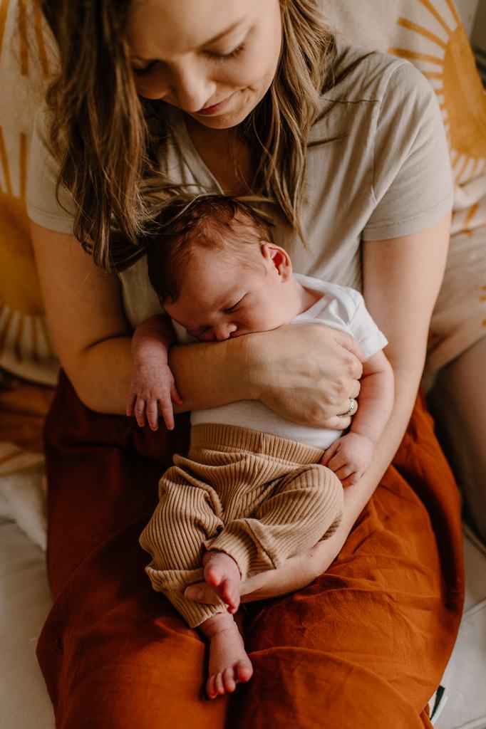 - A word to moms: I know how vulnerable it feels to be in photos so soon after birth. I hear from moms all the time that they only want photos of their newborn baby. However, I promise, you will want these photos later. I like to tell moms that I will include them in a few photos where the focus is still on their baby, but their hands or smile are included.