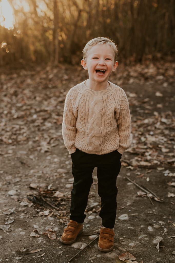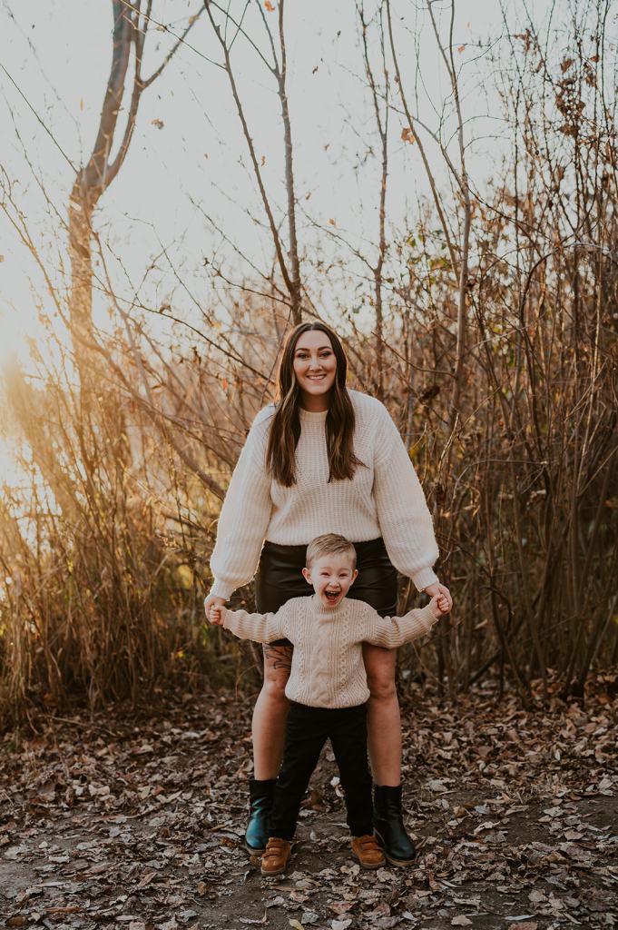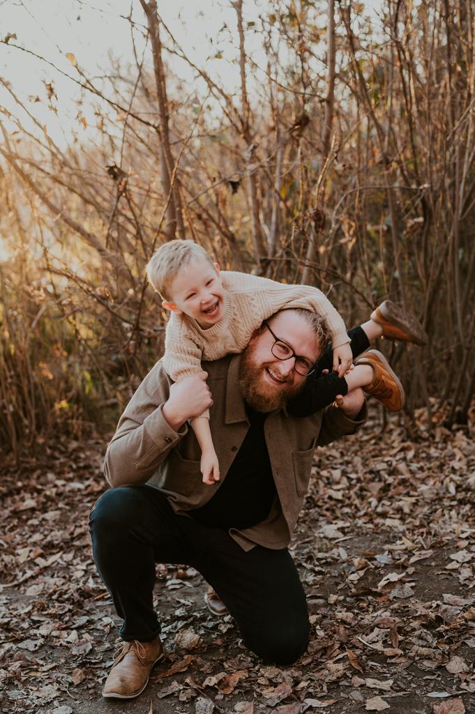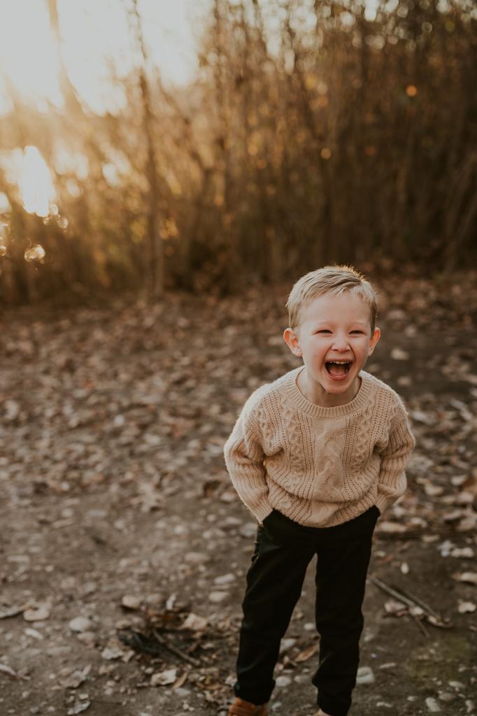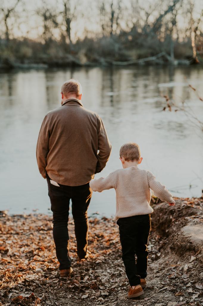 When I photograph the same families over and over again each year, one question I get is how to continue finding variety and creativity. However, I don’t focus on picking brand new locations each year for the sake of creativity. I believe that if you focus on creating important memories first and foremost, the creativity will follow. Stacey suggested for their 5th year of family photos in a row that we go to the place they go on walks as a family almost daily. It’s 5 minutes from their house and meaningful to them. So, that’s exactly what we did! I met them at their house and together we all walked the trail behind their house to the river.
