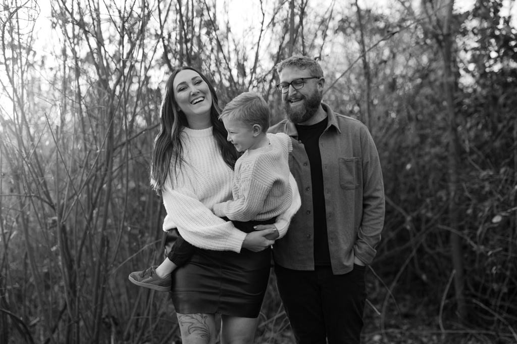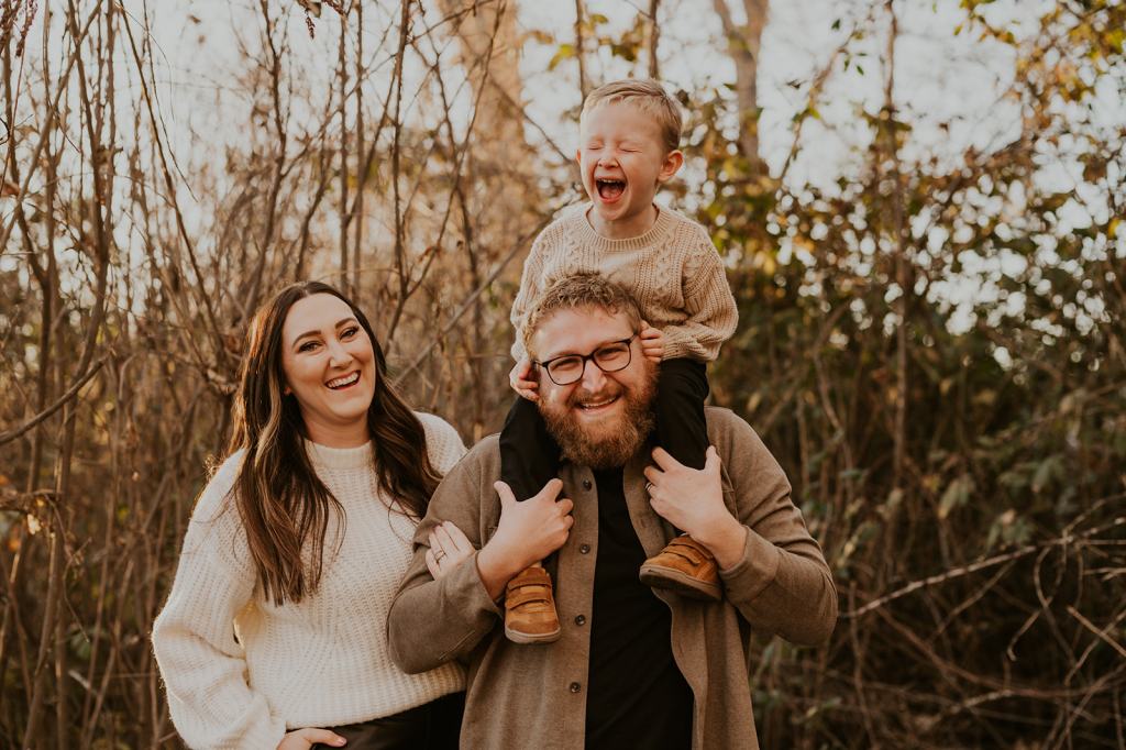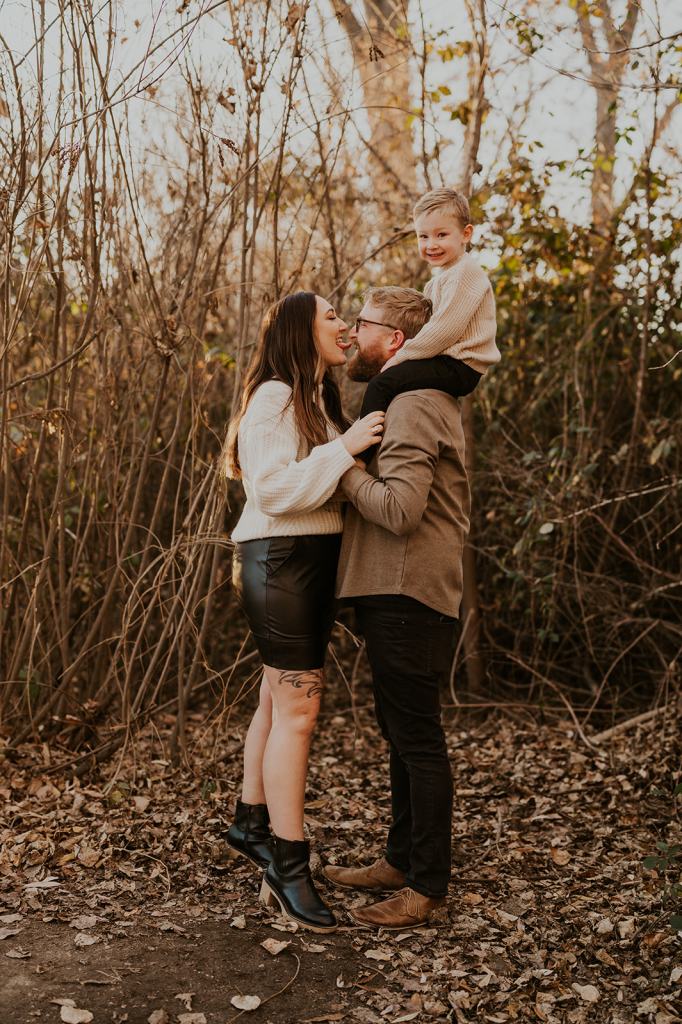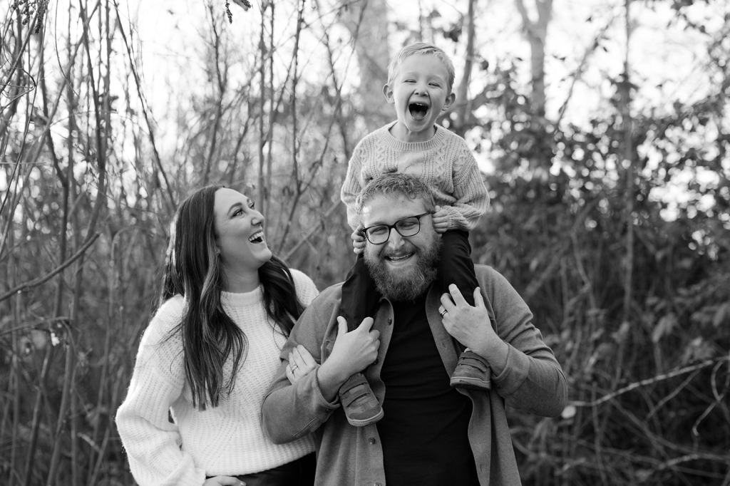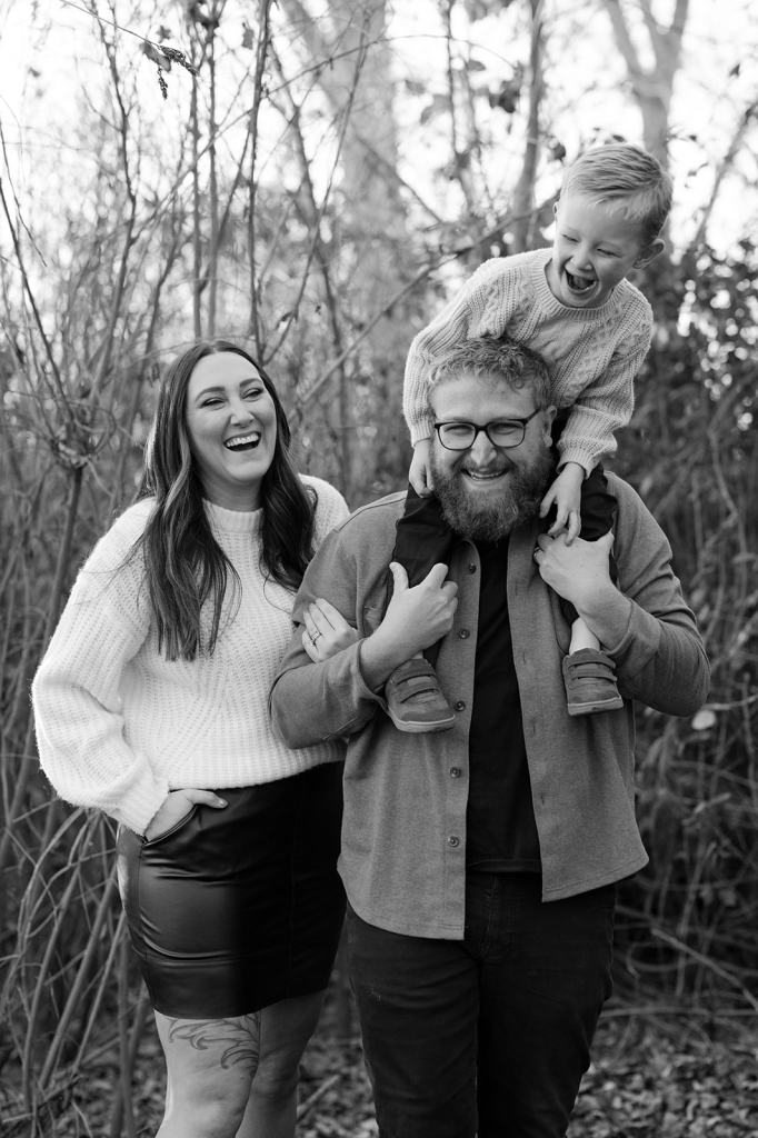 When I photograph the same families over and over again each year, one question I get is how to continue finding variety and creativity. However, I don’t focus on picking brand new locations each year for the sake of creativity. I believe that if you focus on creating important memories first and foremost, the creativity will follow. Stacey suggested for their 5th year of family photos in a row that we go to the place they go on walks as a family almost daily. It’s 5 minutes from their house and meaningful to them. So, that’s exactly what we did! I met them at their house and together we all walked the trail behind their house to the river.