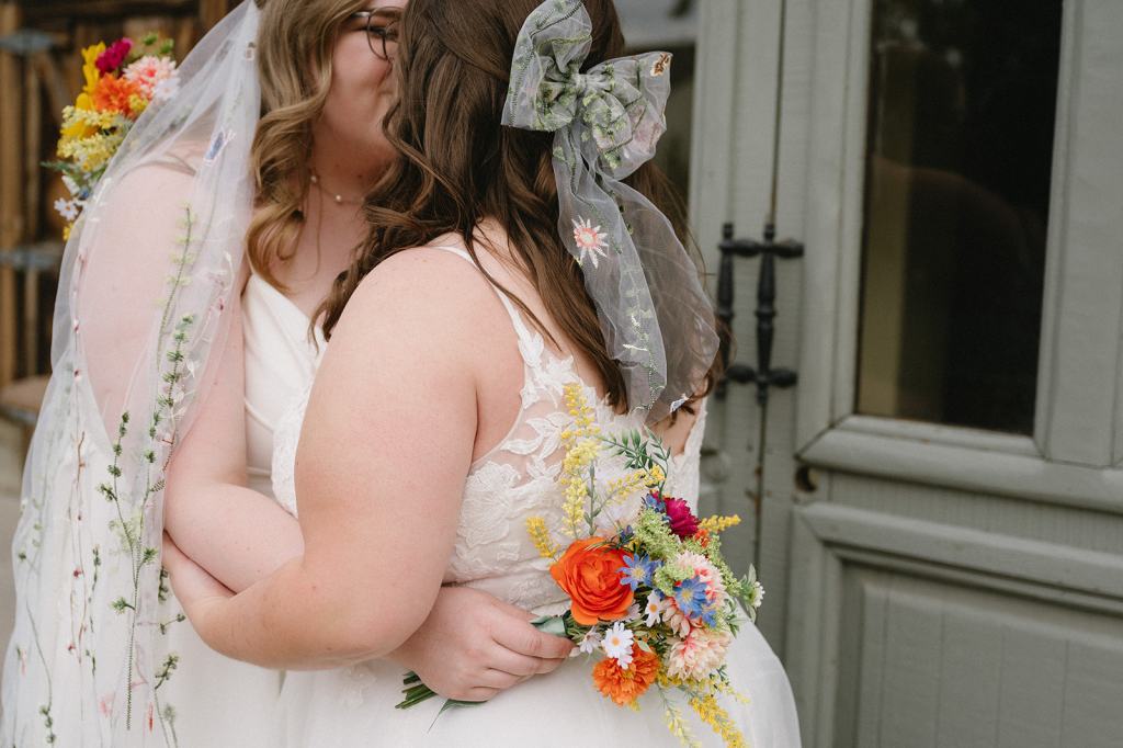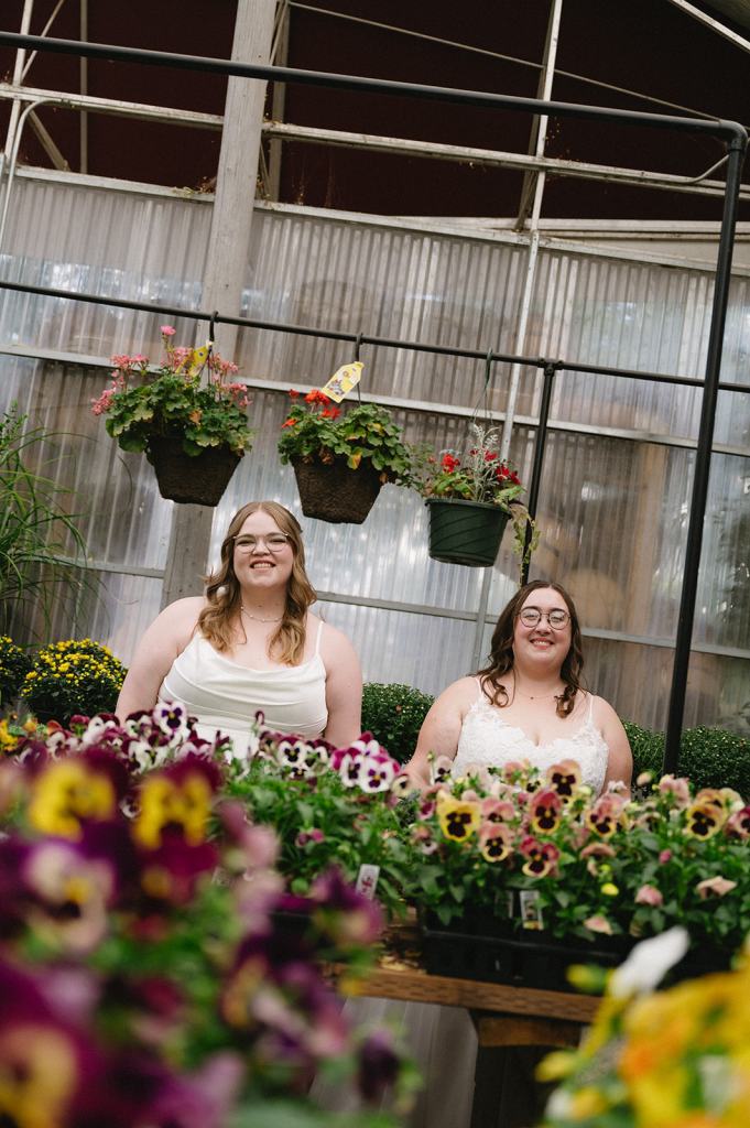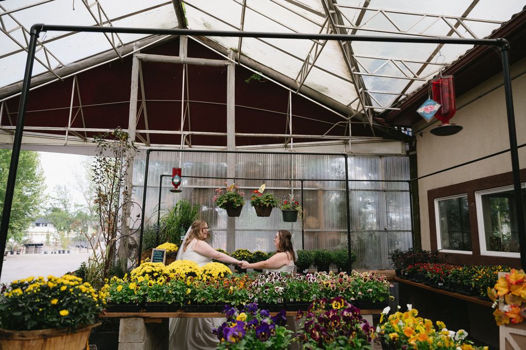 Finding LGBTQ Boise Wedding Vendors can be a challenge for queer couples. I created a resource guide here, which is how Ashley and Emily found me! They told me their priority was finding a team of wedding vendors who they felt completely safe around. Couples deserve to express themselves freely every day, but especially on their wedding day. Their amazing team of vendors included the Victory Gardens, which is a gorgeous plant nursery and coffee shop outside of Boise. Only recently did Victory Gardens start hosting weddings. The lush gardens set the scene for their garden inspired Brigerton-esque wedding!