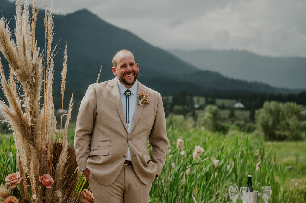 And if you want to steal Aaron’s incredible Western Inspired Groom Style, his boho tie is local from Hells Canyon Bolo Company!