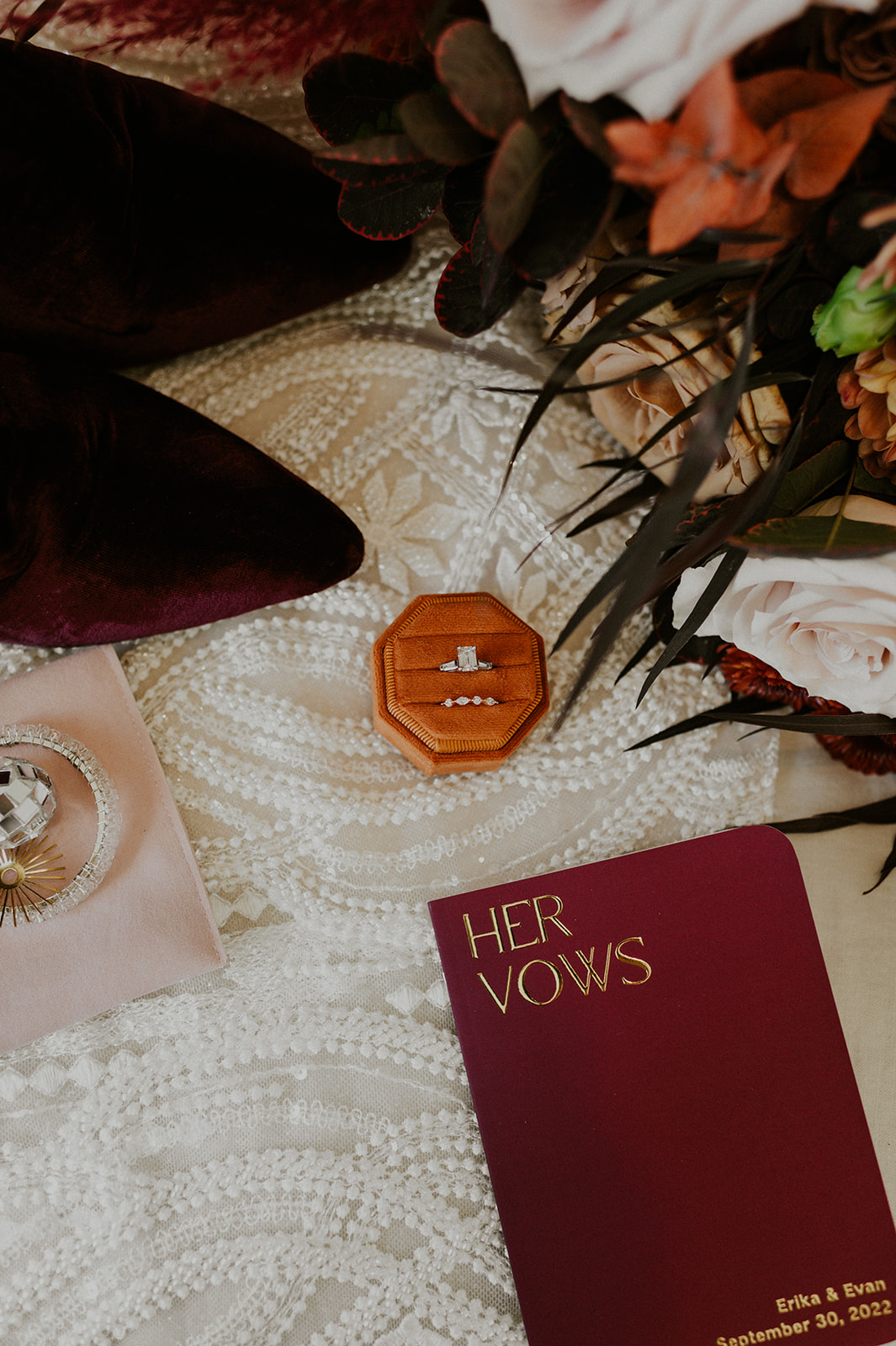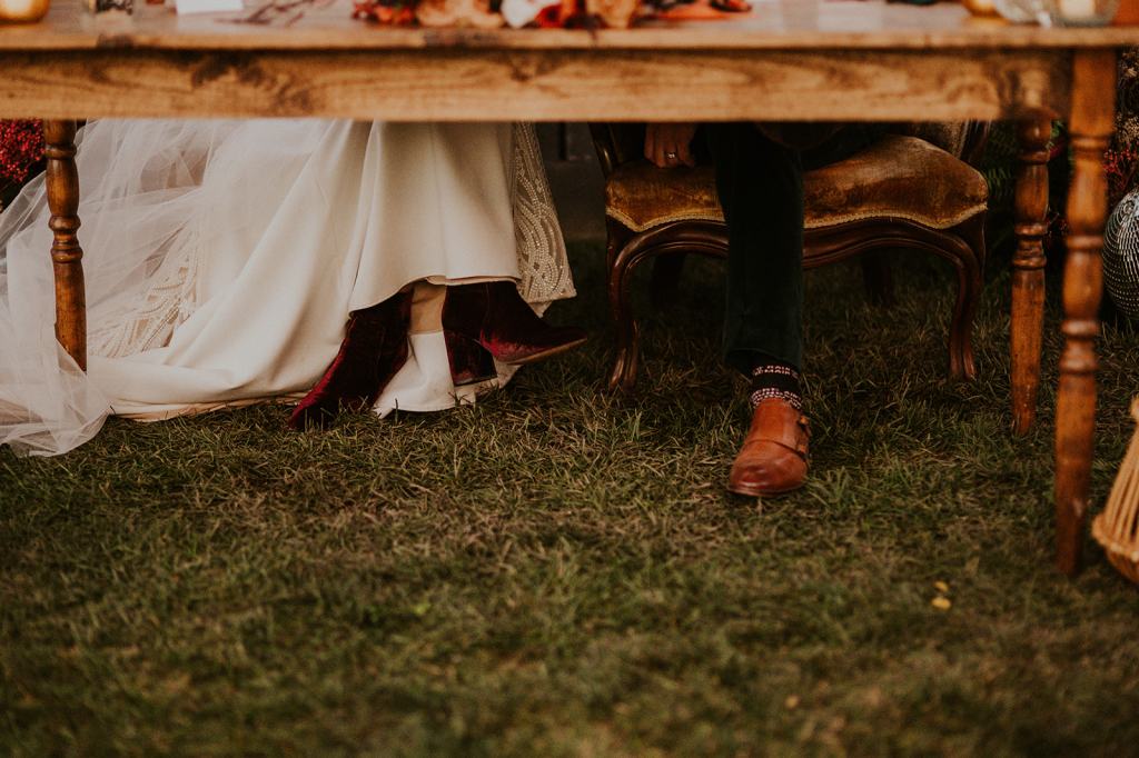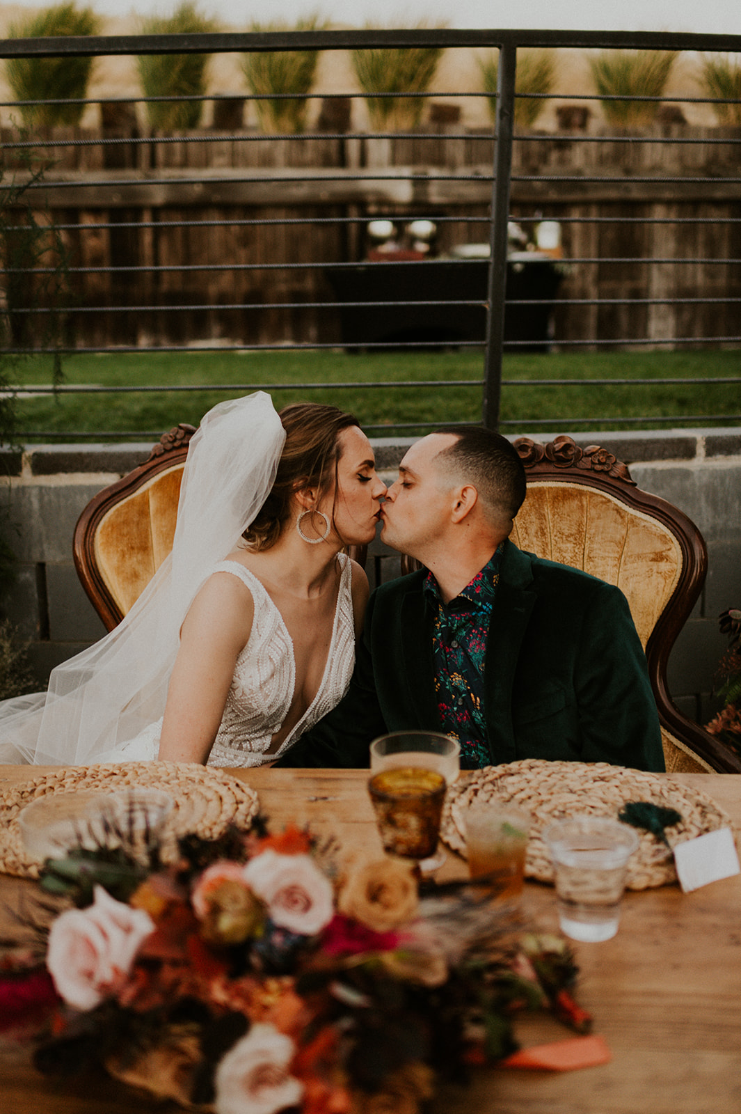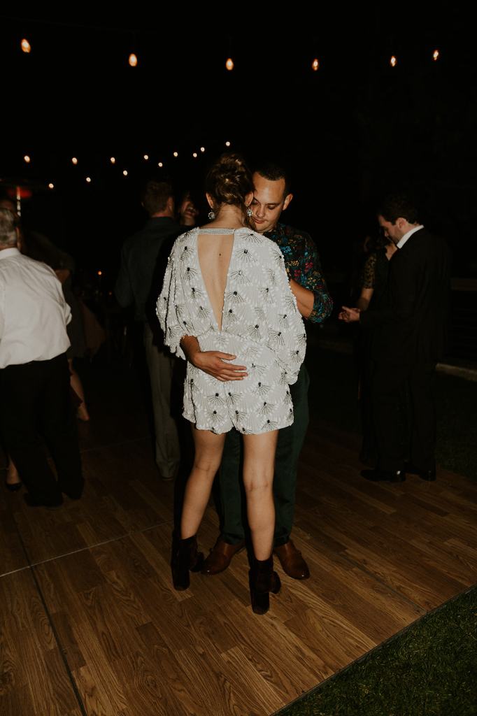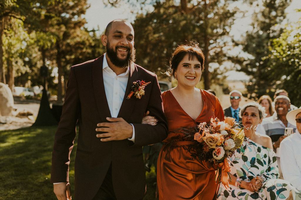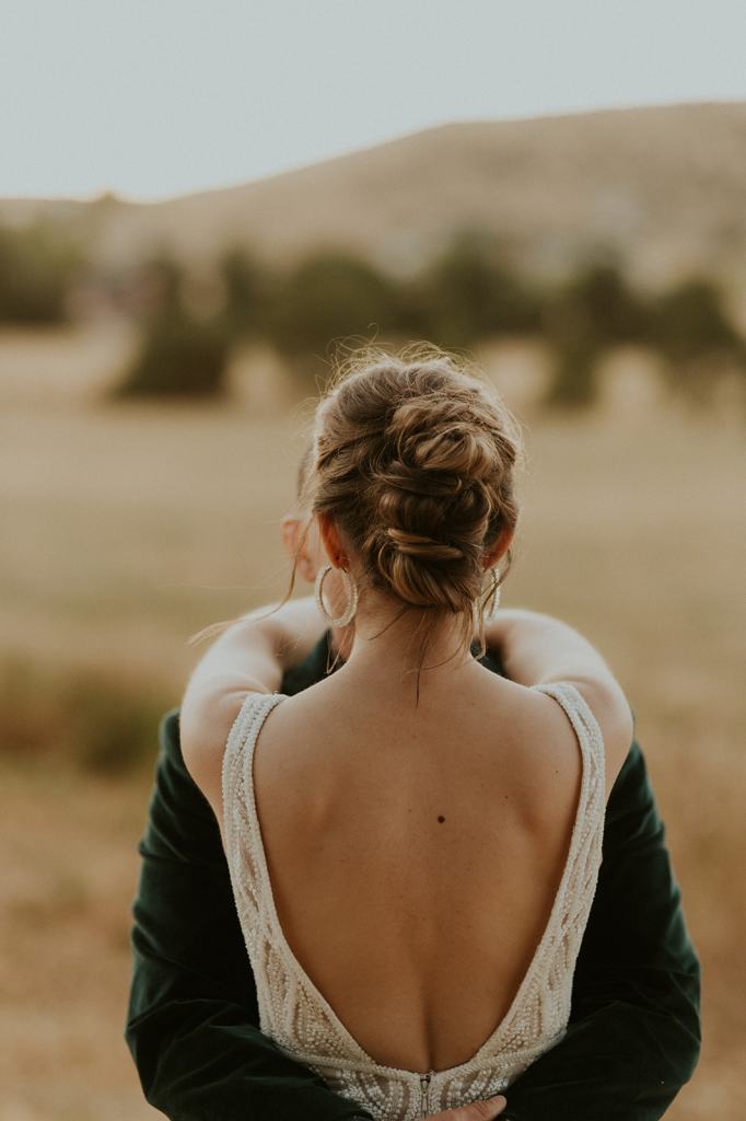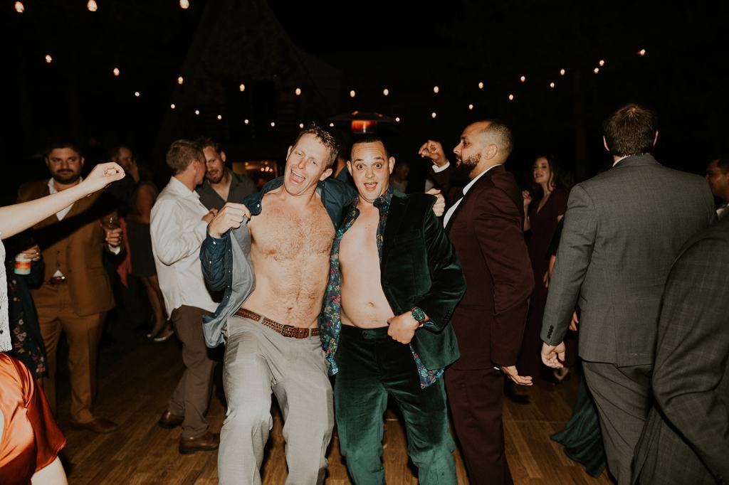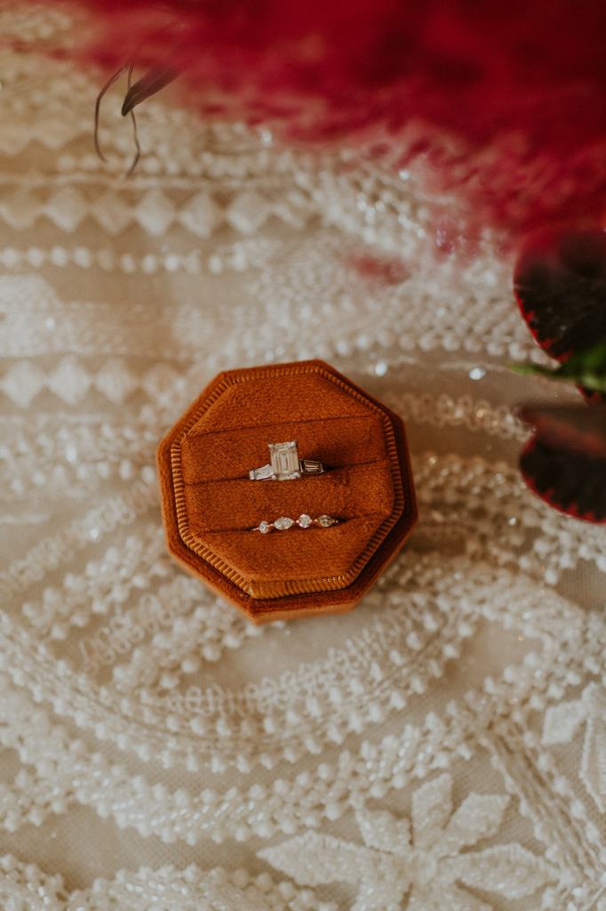 As I mentioned earlier, Evan and Erika LOVE dancing. They share a love for celebrating and a great party. Early on, Erika said the thing they were most excited about on their wedding day was just dancing. I laughed when they told me they would definitely be making it to their after party downtown once the wedding was over! I loved every detail that went into making their wedding feel like them. Evan wore a custom green velvet suit from Bespoke Boise. The colorful floral shirt underneath popped and felt so true to the retro 70 vibes they wanted! Erika wore a glam plunging neckline lace dress. Her makeup by Morgan couldn’t have been more perfect. She wanted dramatic cat eye liner and dark lipstick to match the overall fall aesthetic. As a Boise Wedding Photographer, it simply doesn’t get better than this.