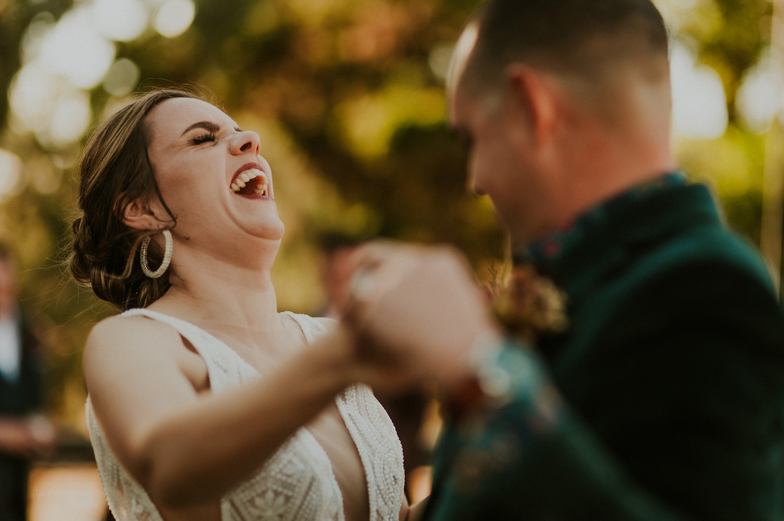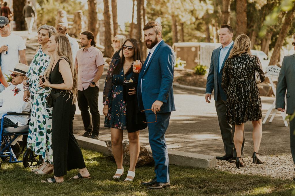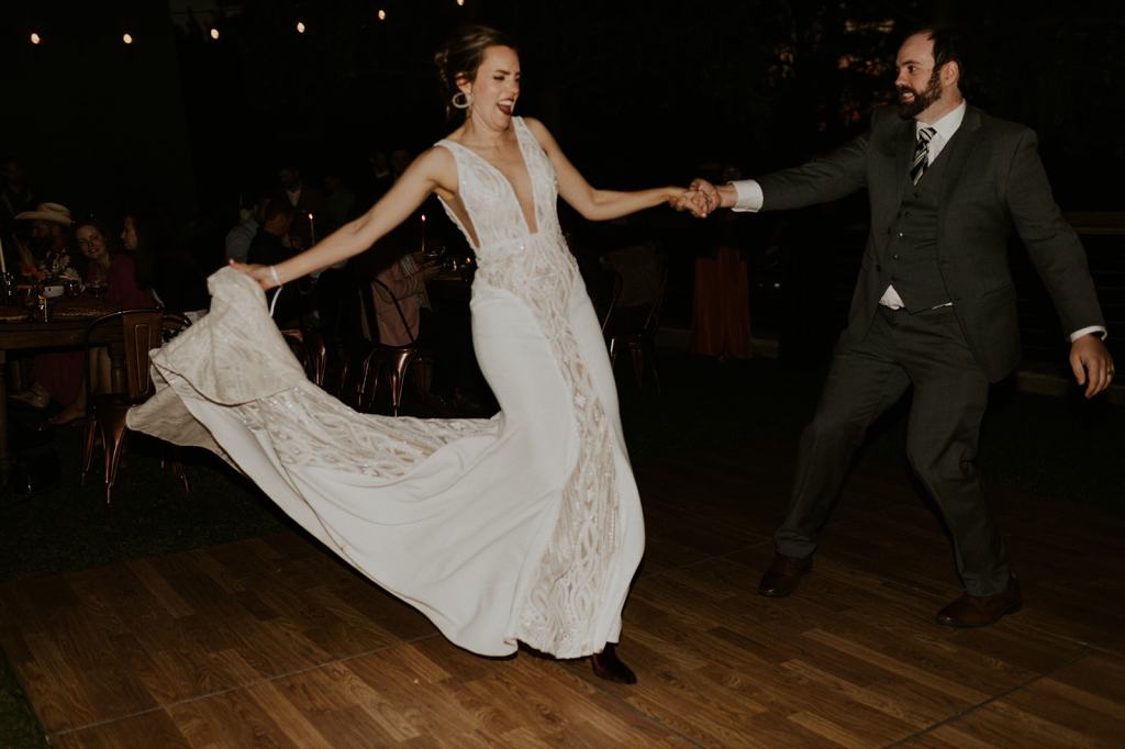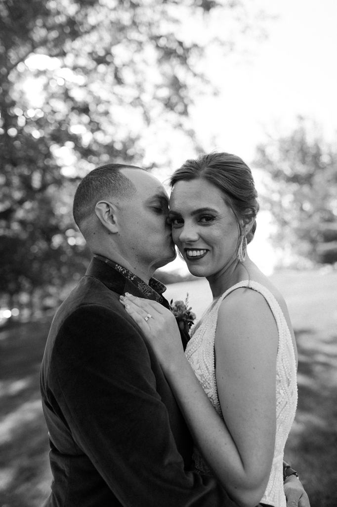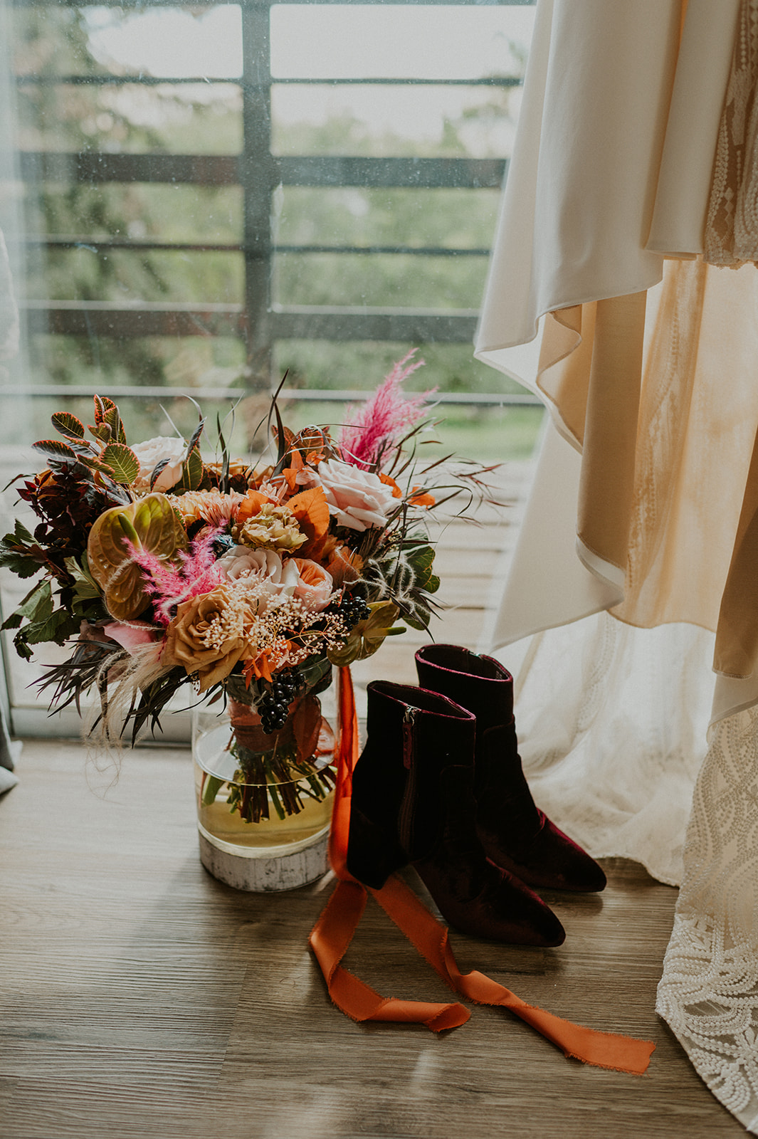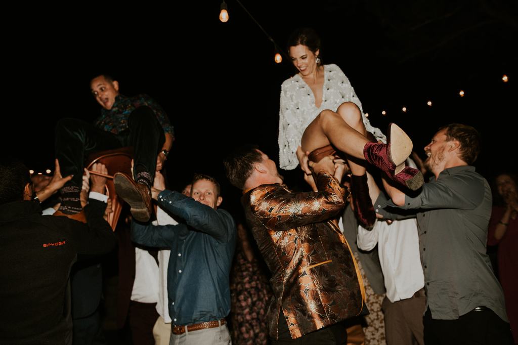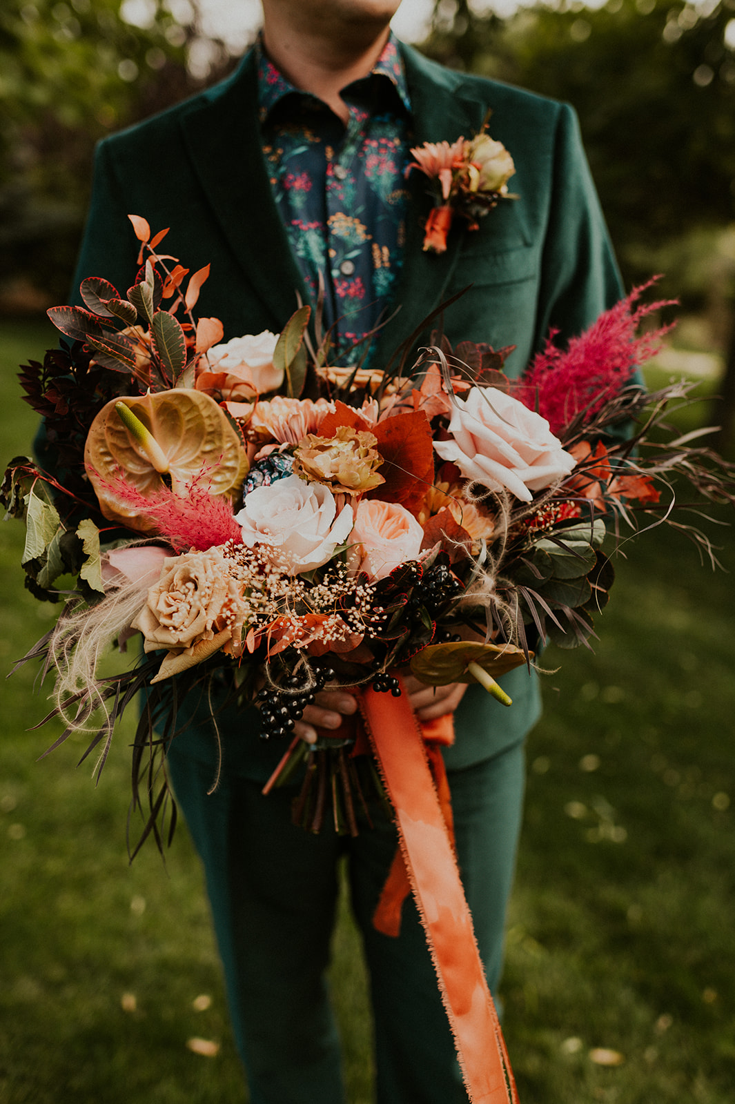 As I mentioned earlier, Evan and Erika LOVE dancing. They share a love for celebrating and a great party. Early on, Erika said the thing they were most excited about on their wedding day was just dancing. I laughed when they told me they would definitely be making it to their after party downtown once the wedding was over! I loved every detail that went into making their wedding feel like them. Evan wore a custom green velvet suit from Bespoke Boise. The colorful floral shirt underneath popped and felt so true to the retro 70 vibes they wanted! Erika wore a glam plunging neckline lace dress. Her makeup by Morgan couldn’t have been more perfect. She wanted dramatic cat eye liner and dark lipstick to match the overall fall aesthetic. As a Boise Wedding Photographer, it simply doesn’t get better than this.