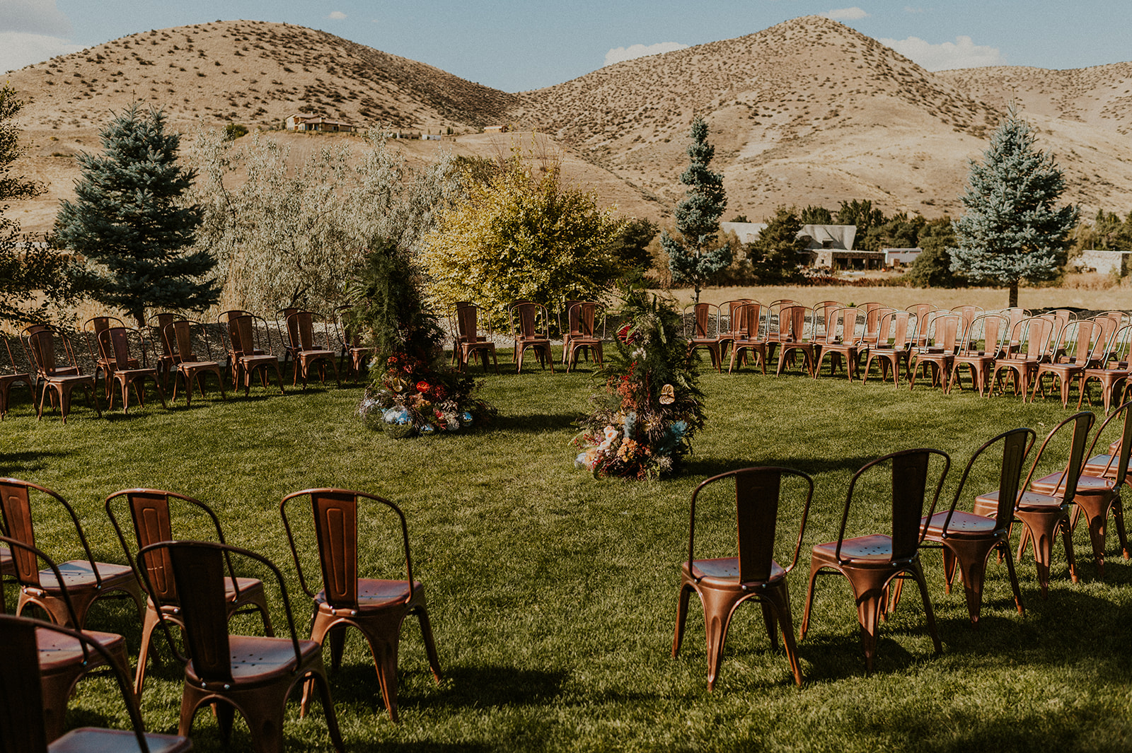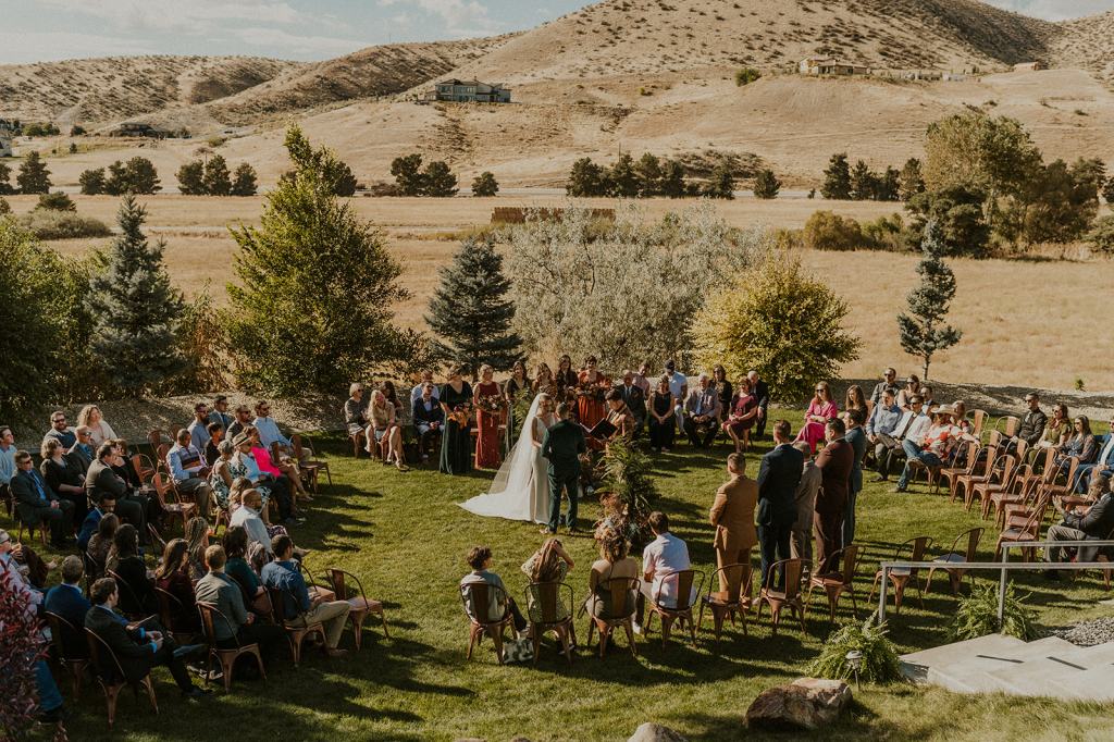If you’ve never heard of the Stone Crossing Boise Wedding Venue, you need to check out their website here! This incredible wedding venue is located in the heart of the Boise foothills. From every spot on the property, you can see the gorgeous foothills everywhere you look. I’ve worked in the foothills often, as you’ve seen here and here. Evan and Erika chose Stone Crossing because of the amazing panoramic views that would impress their friends and family traveling from all over the country for their wedding. Also, the foothills turn golden yellow and orange in the fall which perfectly matched their theme and colors! I have been an Idaho Wedding Photographer for 10+ years and their wedding was one of my all time favorites!