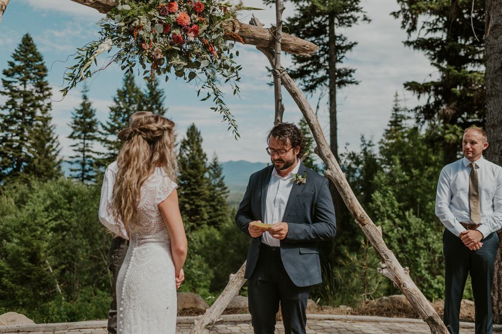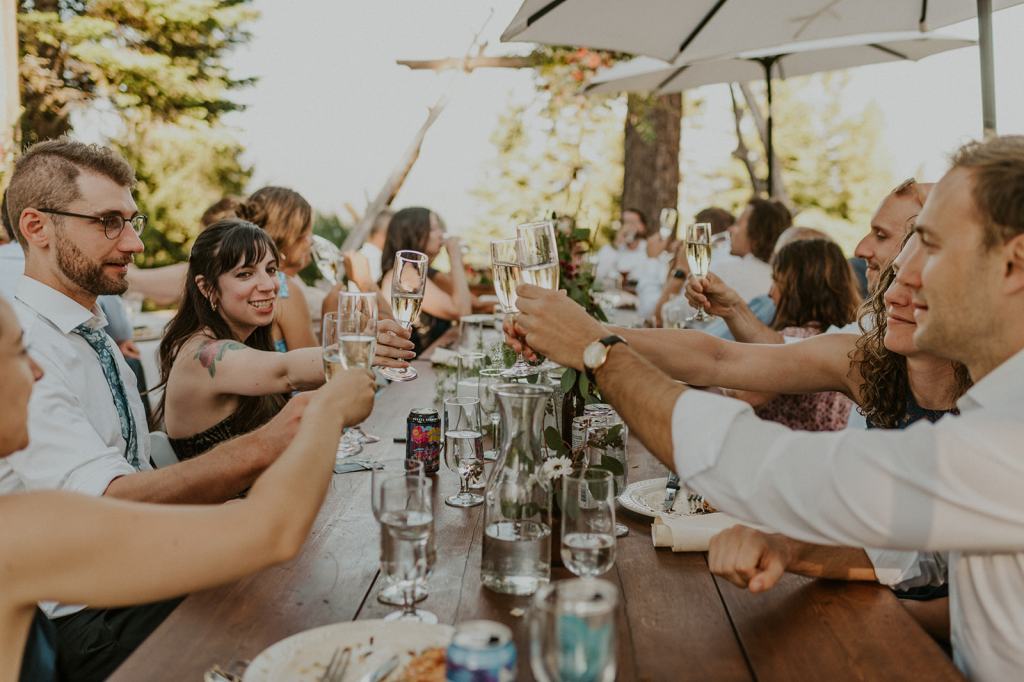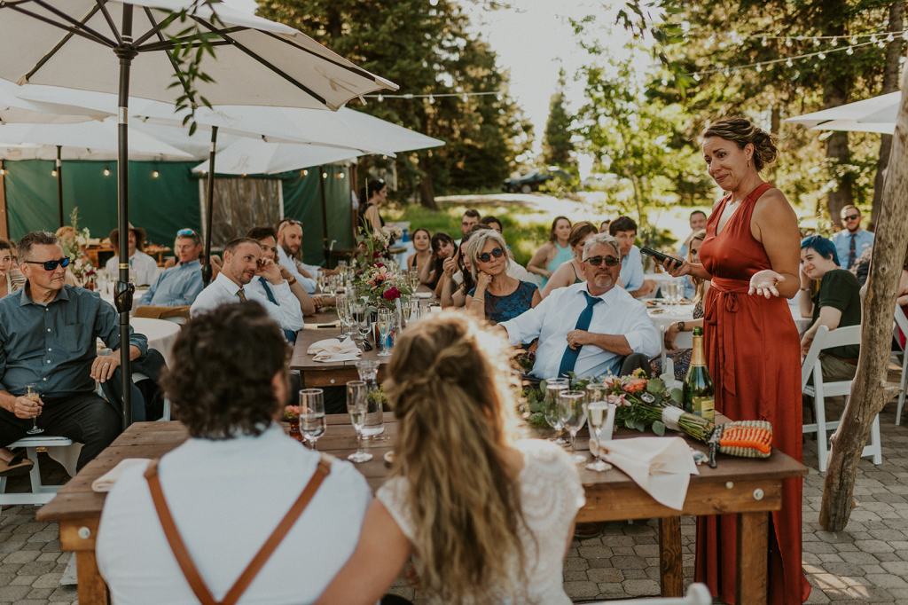Finding a venue where they could feel immersed in nature and have a low key relaxed wedding was their priority. Their priority was to have as much quality time with their guests. Although they love a great dance party, a dinner party in the woods felt more fitting. Kyla told me early on that she wanted to give her guests as much time as possible to enjoy their dinner and beverages in peace without an intense timeline. The Whitetail Club’s Yurt is available for intimate events, including intimate weddings and elopements. Kyla and Roby had 60 guests travel from around the globe to Idaho for their Whitetail Club McCall Wedding.